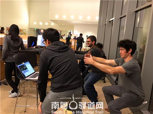 骇客松比赛(Hacking Art)是指一种用24小时来设计完成一项通过技术来实现某个目的的活动。这个团队的组合说来颇有些志同道合的意味,不少的队员是通过微信群得以认识的,而他们共同的兴趣——太极拳则促成了组合。在阿翔的太极拳教学、以及在哈佛参赛学生的VR技术基础上,团队成功地开发了一套VR辅助学习太极拳的程序,其使用了HTC VIVE这款虚拟现实设备,来自纽约Pratt设计学院的学生也设计了一套绳索系统可以牵引训练者的动作。可以说,这个模式颇具潜力,将太极拳游戏化,这对日后的太极拳推广及太极拳标准化有很大的意义。