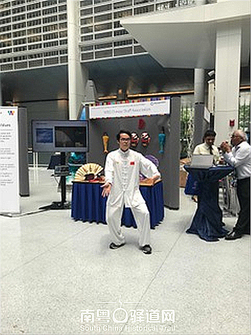 阿翔在世界银行大厅表演太极拳。