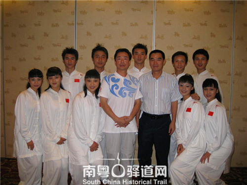 王二平,是田新德的弟子,曾获多届全国全运会冠军、亚运会冠军、世界冠军。在2008年北京奥运会开幕式上,王二平任导演组武术专家编导兼太极主演,成为了奥运会开幕式上的经典。亚奥理事会总部大楼在科威特落成庆典,最重量级的表演者就是广东武术队,太极拳的表演是当晚庆祝晚会的压轴戏。2016年,借助广东与俄罗斯圣彼得堡结为友好省市的契机,王二平率领广东武术队代表广东赴圣彼得堡进行太极拳、南拳武术表演,深受俄罗斯人民喜爱,表演结束后,许多爱好武术的俄罗斯朋友一直跟随武术队到餐馆交流。