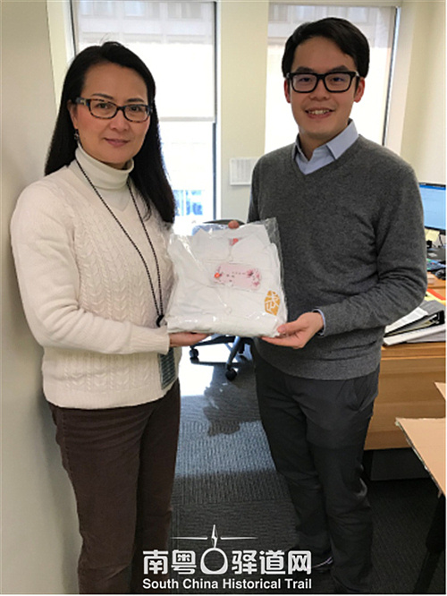 阿翔向参与太极拳演出的世行资深金融专家Jiang Weihua女士传递了太极拳服 ,Jiang女士对中国武协的慷慨帮助表示了衷心的感谢。