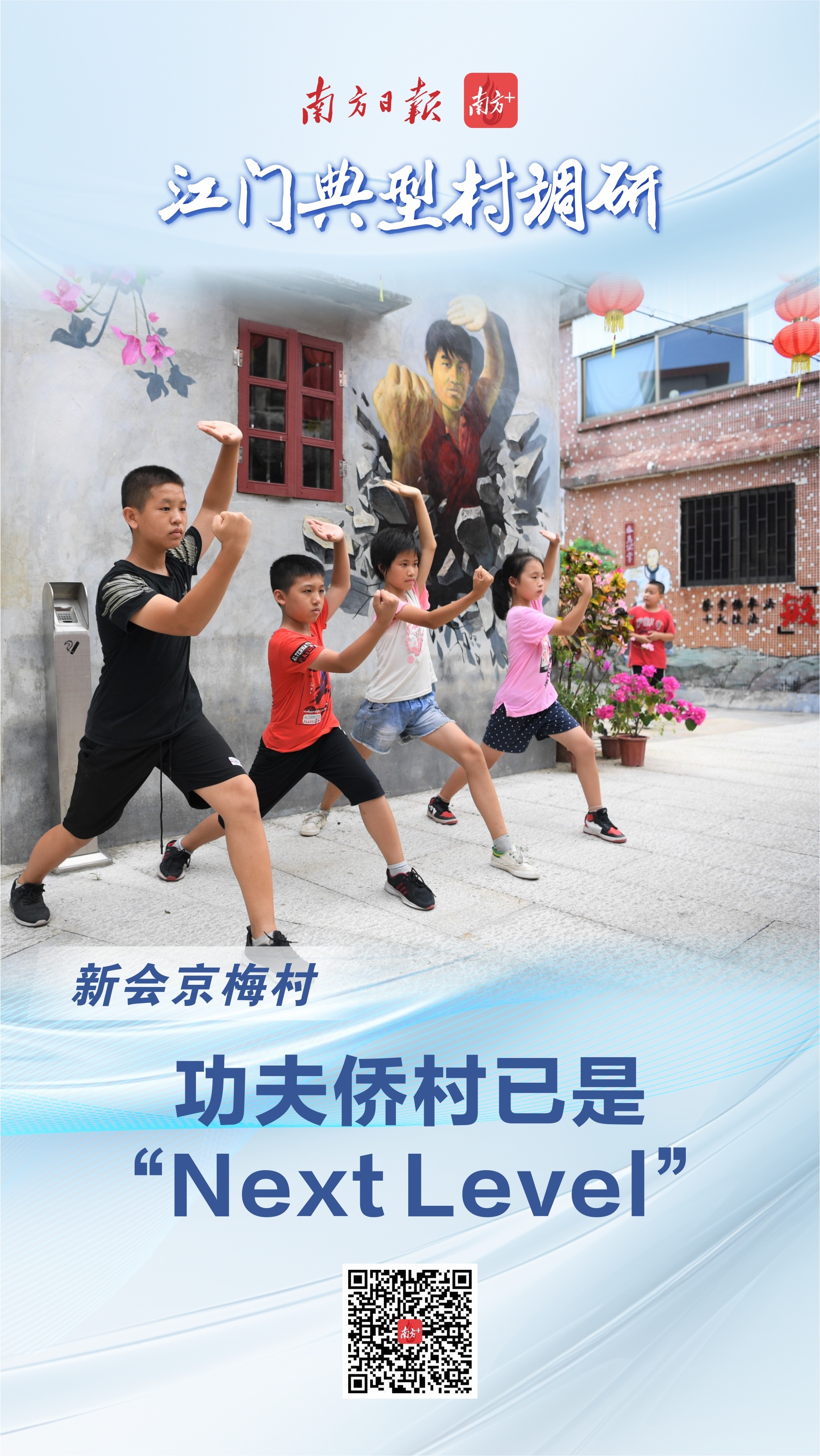 在“打卡率”最高的出神入化巷,京梅村近期将增设一批二维码。纵横的巷道每隔五六步就能看到以蔡李佛拳十大技法为内容的壁画——龙形拳、虎形拳、豹形拳等,只需用手机扫对应二维码,即可观看演示短视频,凹出墙上人物同款招式,发出标识的“挖”“嘀”“噫”“哈”“卟”等五音,妙趣横生。