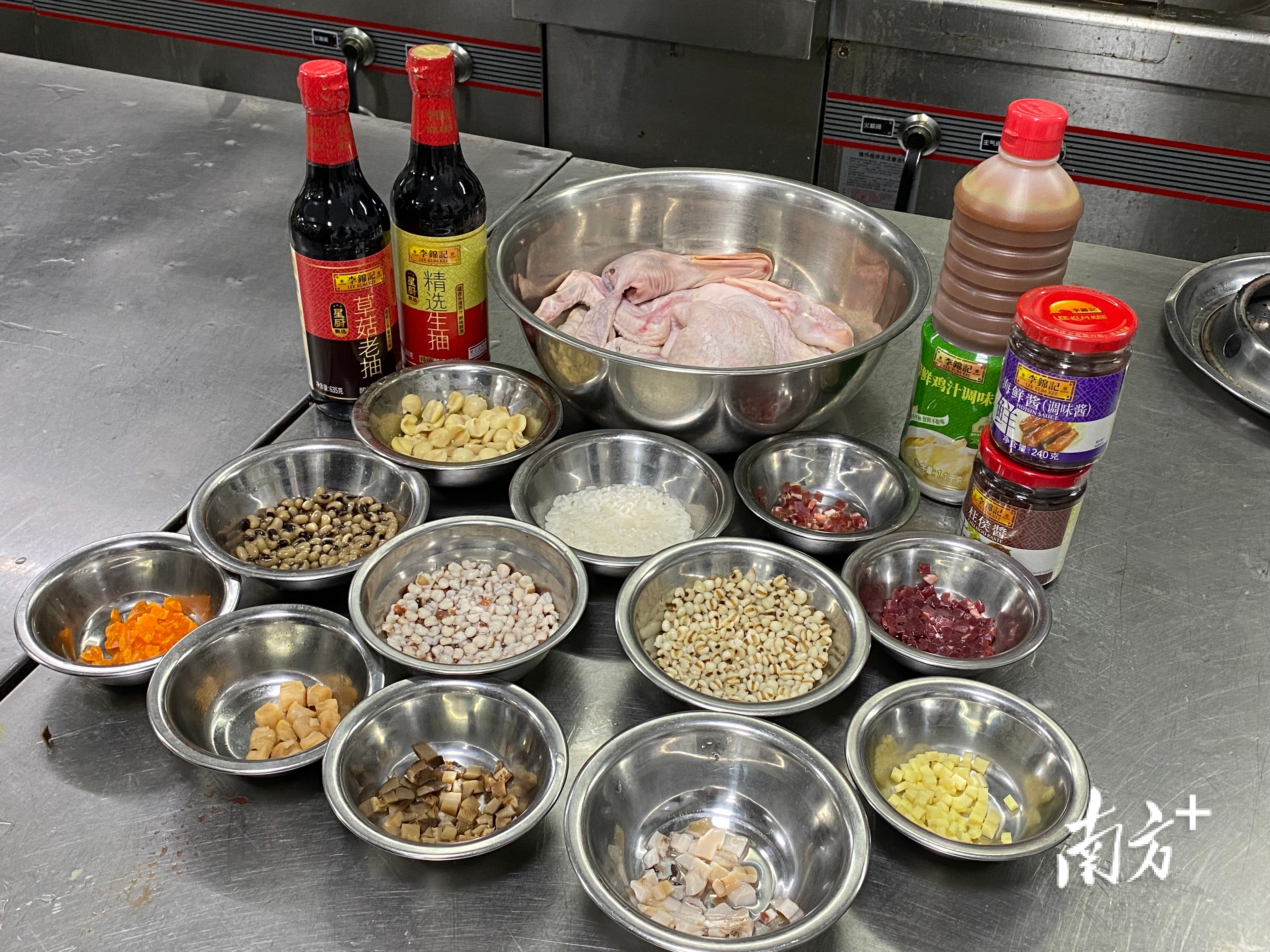 陈皮八宝鸭选用广西南乡鸭,搭配莲子、糯米、红枣、薏米等多种滋补食材作为填充料。