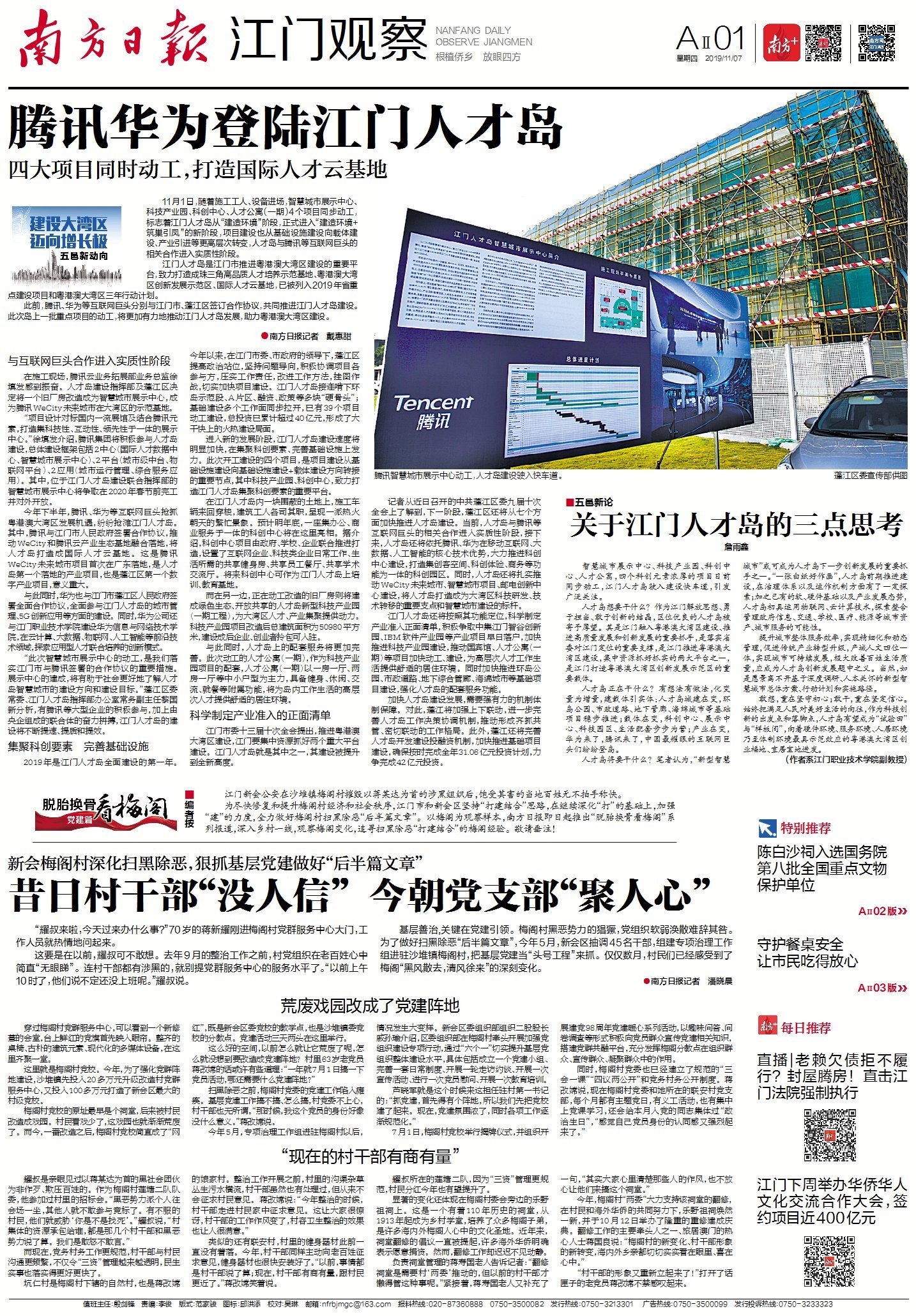为尽快修复和提升梅阁村经济和社会秩序,江门市和新会区坚持“打建结合”思路,在继续深化“打”的基础上,加强“建”的力度,全力做好梅阁村扫黑除恶“后半篇文章”。以梅阁为观察样本,南方日报、南方+即日起推出“脱胎换骨看梅阁”系列报道,深入乡村一线,观察梅阁变化,追寻扫黑除恶“打建结合”的梅阁经验。敬请垂注!