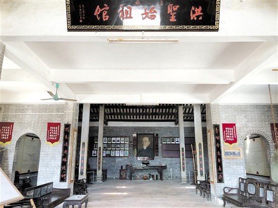 洪圣始祖馆旧址,是蔡李佛武术现存最早的活动场所,坐落于崖门镇京梅村蔡李佛文化广场旁。据悉,该馆是在清道光年间,陈享开设的、用于传艺的武馆。洪圣始祖馆外观为硬山顶、灰塑龙船脊,馆内为筒板瓦屋间、青砖墙身,两侧陈设十余种兵器,正面墙中央挂有陈享公巨型画像,以表缅怀与敬意。在陈享公画像两旁,挂满了为蔡李佛拳的传承发展作出了重大贡献的其他人物的画像。