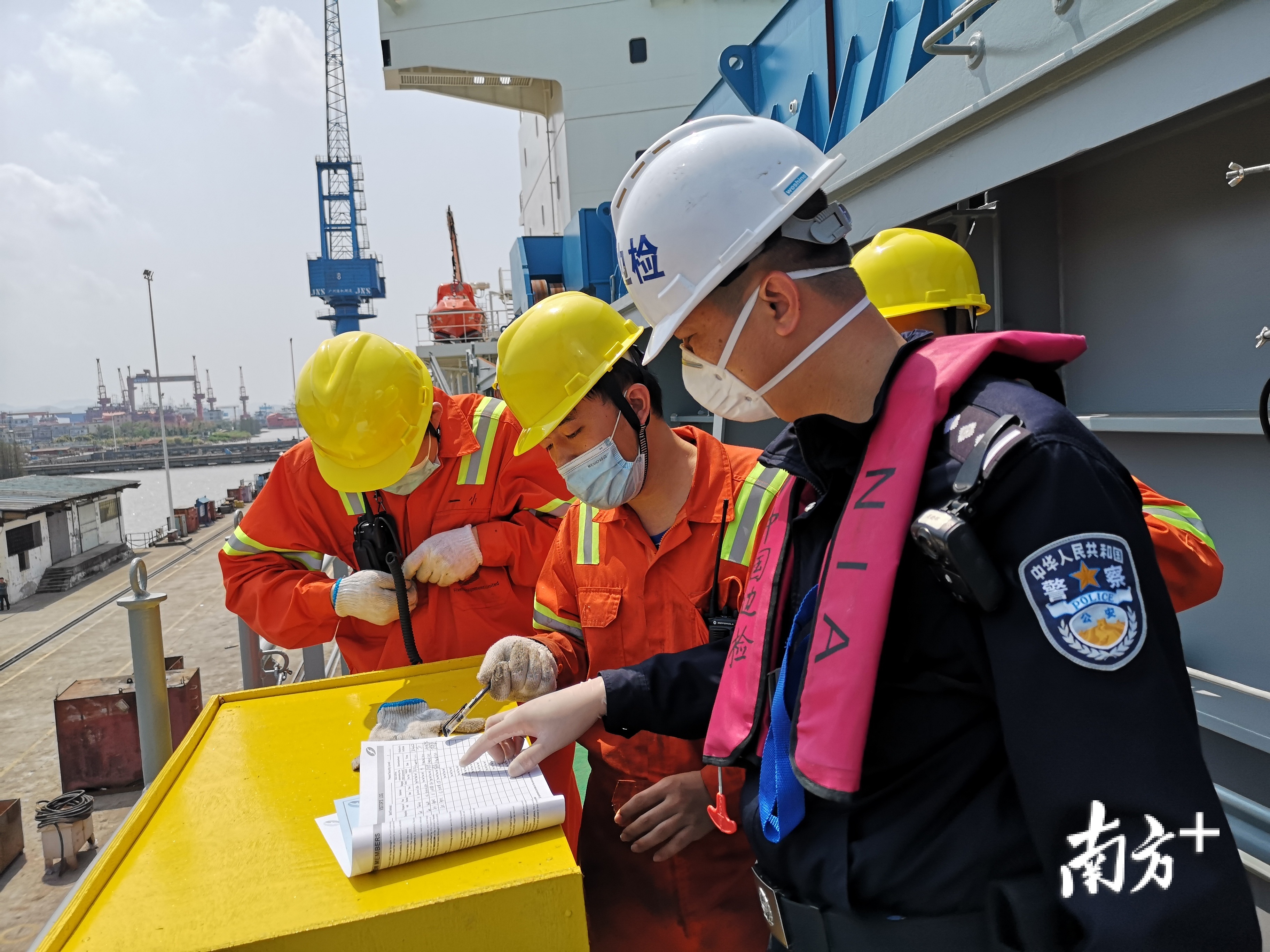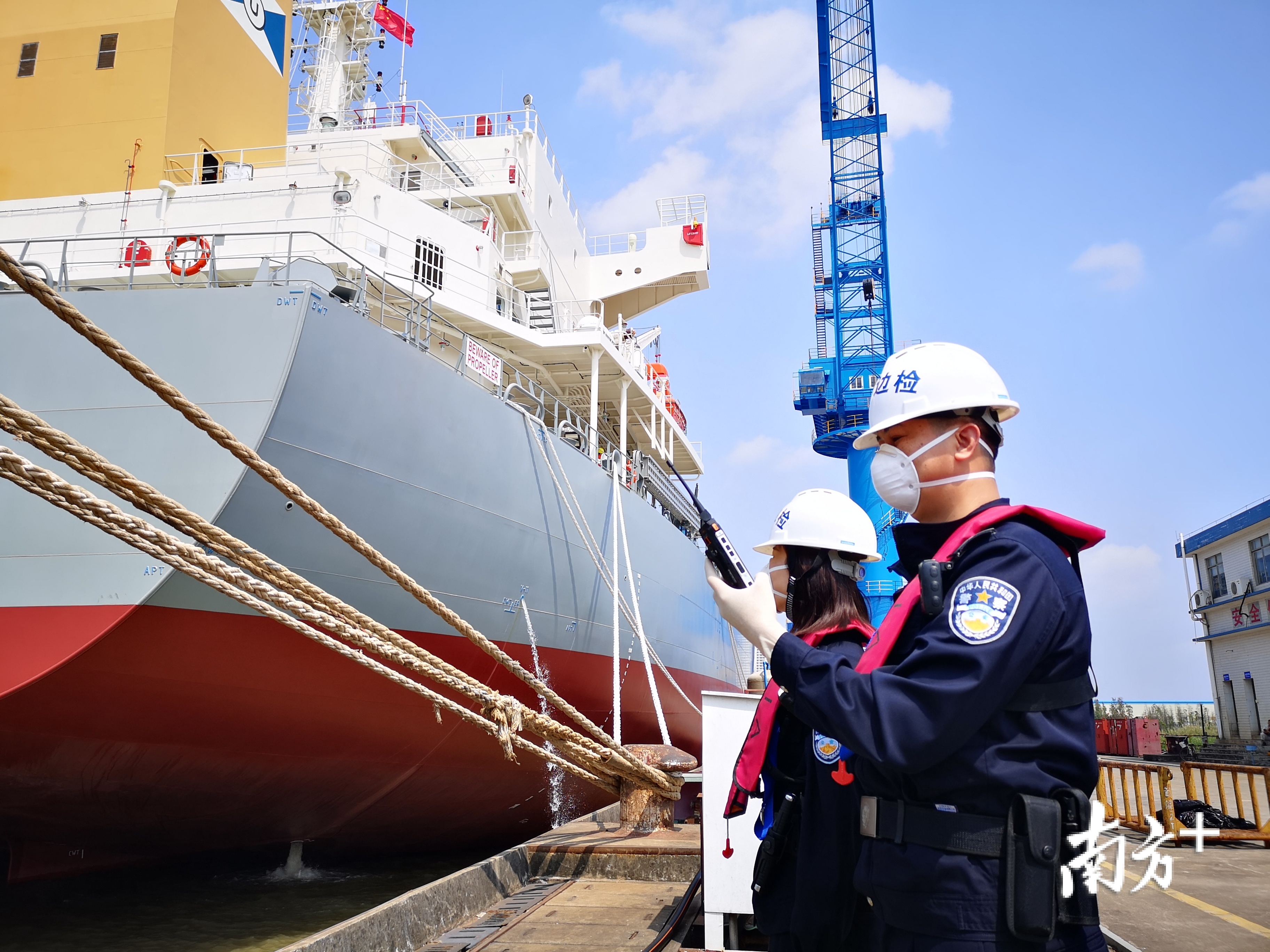 同时,执勤民警提前到达南洋造船厂码头等候,与前台窗口办理人员保持通联,紧密衔接码头现场手续办理。在船体检查环节,该边检站增派警力,完成人证对照和机舱、生活区等部位的检查任务,高效有序完成各项勤务。