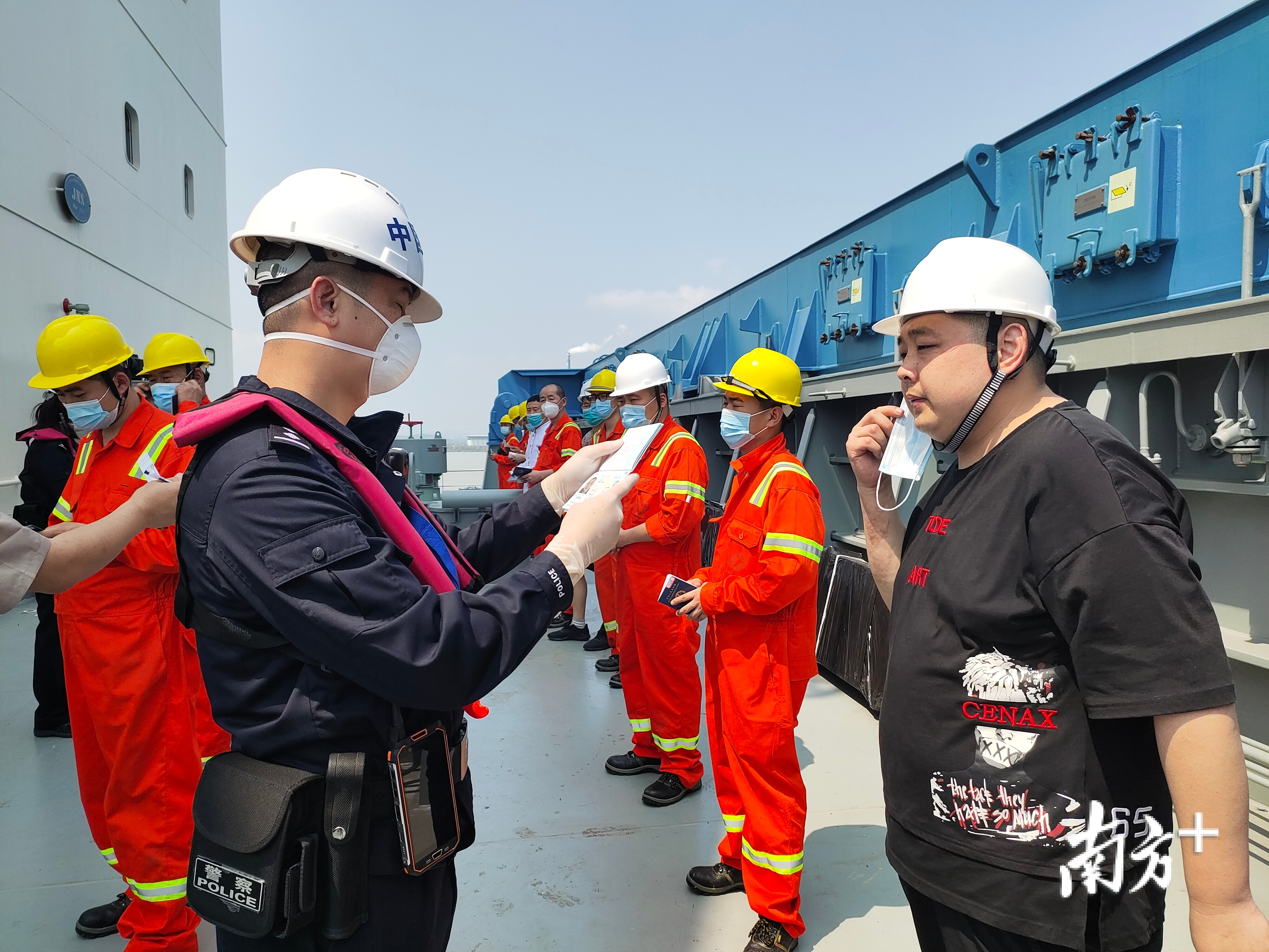 执勤期间,新会边检站执勤二队通过综合数据系统提前研判勤务风险,联合海关防疫部门及时完成疫情防控有关措施,缩短了船舶出境等待时间。