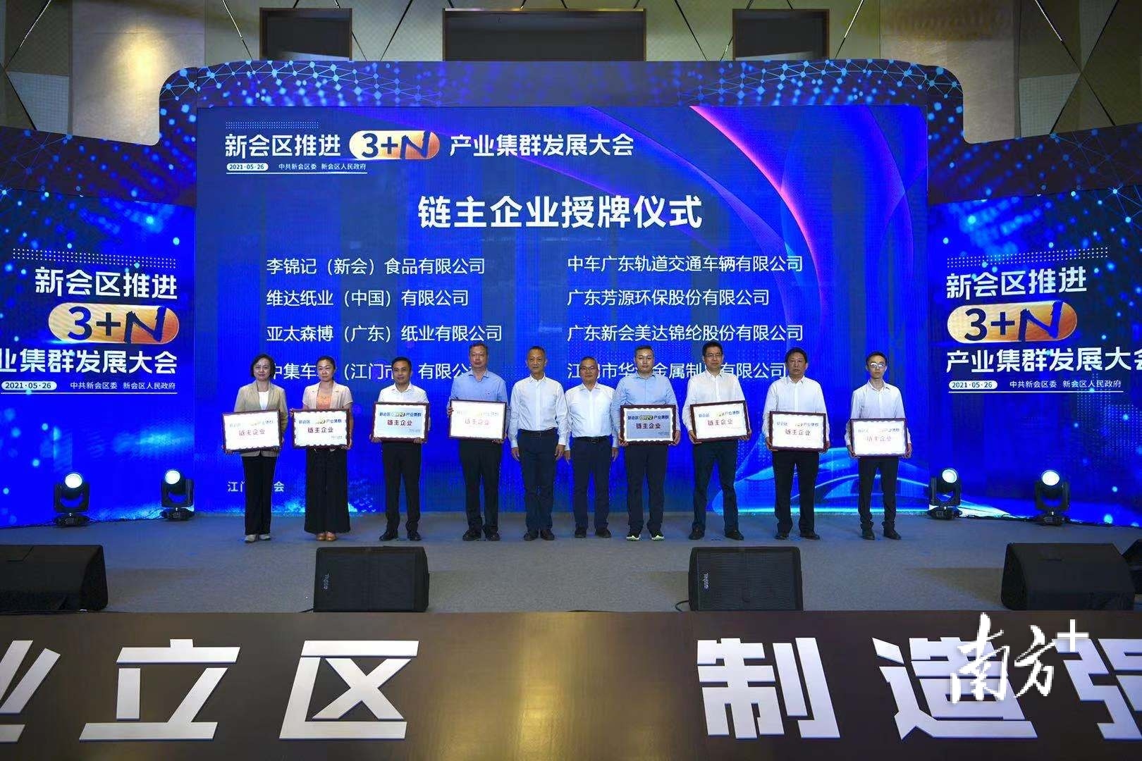 5月26日下午,新会区召开推进“3+N”产业集群发展大会。为充分发挥“链主”企业的引领作用,该区聚焦产业链稳链补链强链延链控链工作,遴选了8家“链主”企业,进一步加快培育发展我区产业集群,促进全区产业发展优化升级。