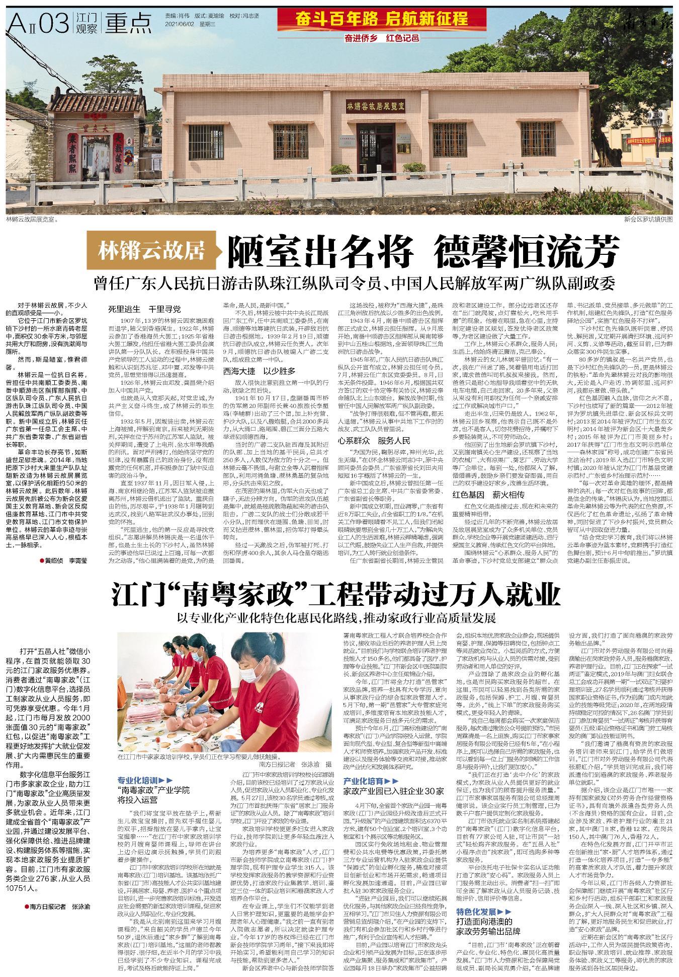 “结合党史学习教育,我们将以林锵云革命事迹为蓝本素材,党群携手打造红色舞台剧,预计6月中旬前推出。”罗坑镇党建办副主任彭振忠说。