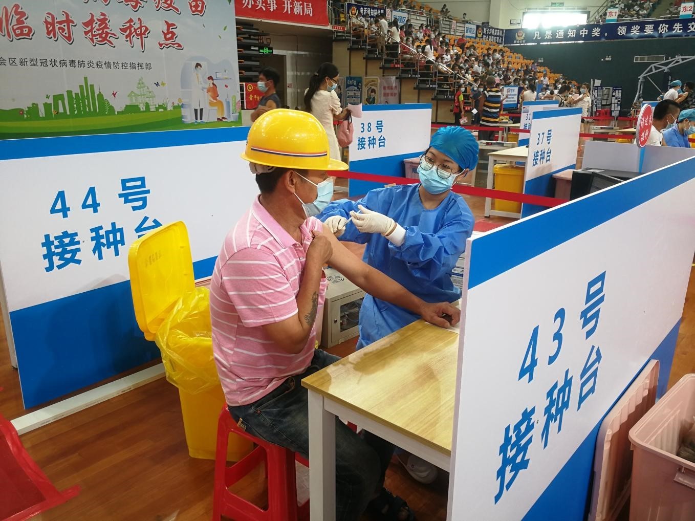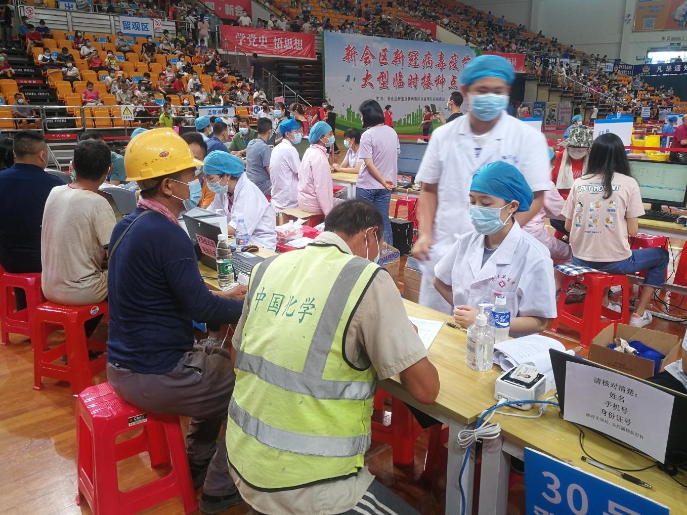 5000多名建筑工人集体接种疫苗。