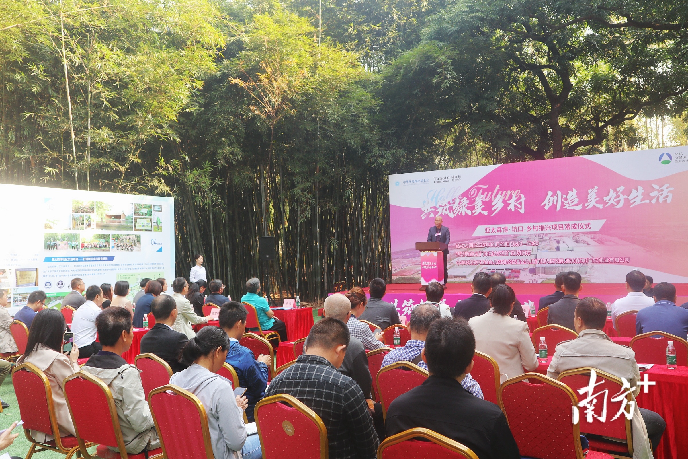 活动现场,亚太森博宣布将在未来5~10年内每年投入30万元孵化坑口乡村振兴项目,并引进江门市交通文旅集团、方向教育、巴贝高文旅集团等合作方,共同开发运营更多项目。与此同时,亚太森博将通过扶持资金、合建项目、培育产业、扩大就业等方式,助力乡村旅游文化产业发展、人居环境整治、基础设施建设、乡风文明提升等,积极探索可持续发展的乡村振兴村企联建机制,探索乡村与企业相融发展的并进之路。