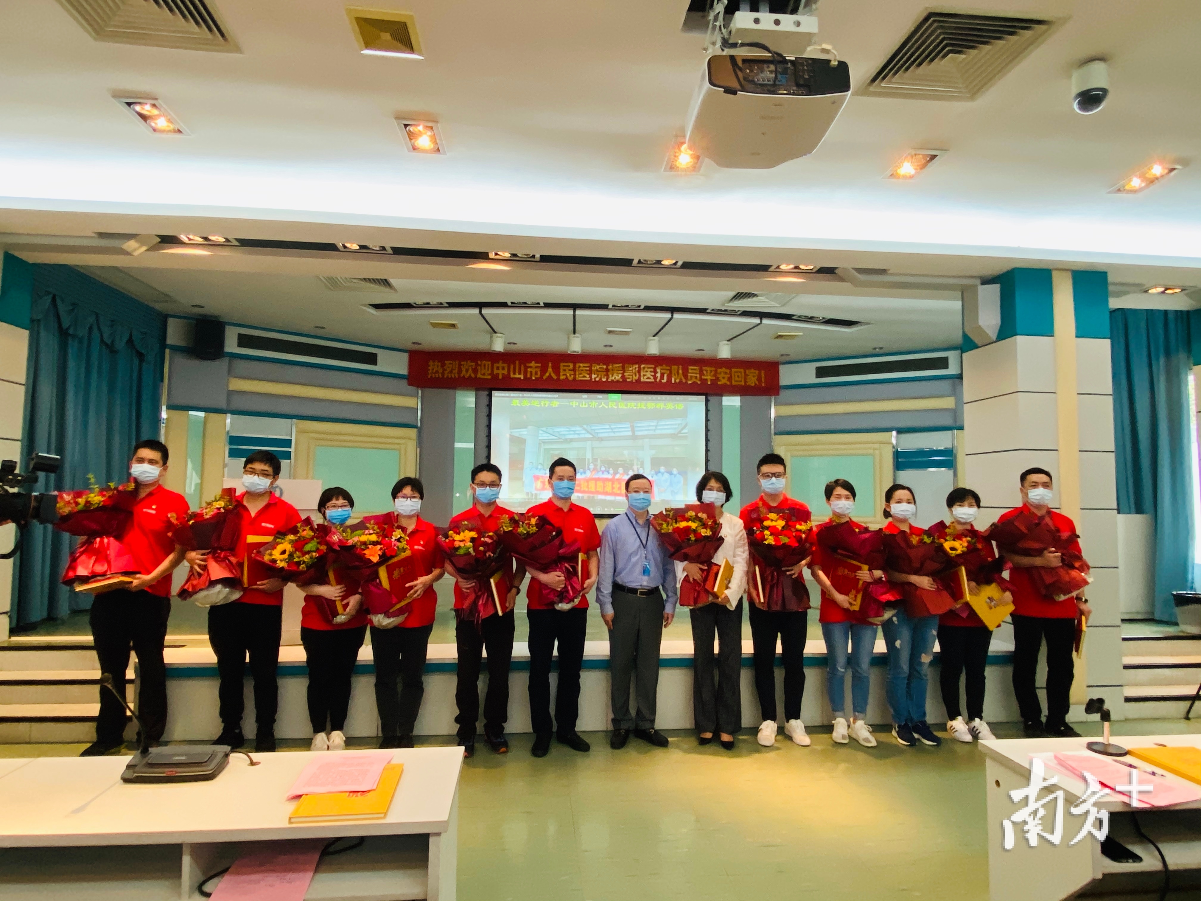 4月20日,中山市人民医院、中山市人民医院南朗分院的12名援鄂医护人员已返岗,中山市人民医院举办援鄂医疗队员归队欢迎仪式。会上循环播放了医护人员抗击新冠疫情的影像资料,并向抗疫医护人员颁发了荣誉证书、赠送了抗击疫情的画册。