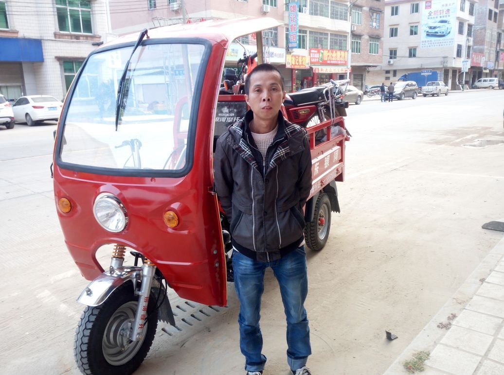 ▲贫困户蔡崇诚领取崭新的三轮摩托车