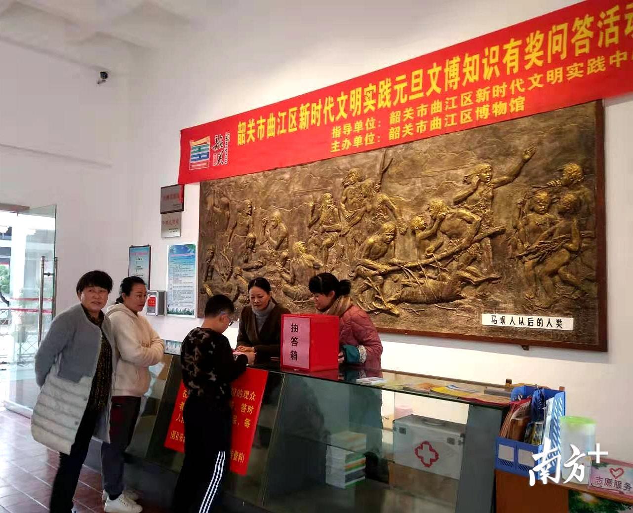 在马坝人遗址公园一进大门处,笔者被文艺演出和游园活动吸引,来自曲江区业余演出团队的欢歌悦舞点燃了节日的气氛。现场为市民游客准备了百发百中、盲人敲锣、巧手夹珠、吹乒乓球等充满趣味的有奖游园活动,吸引了众多市民游客热情参与,玩得不亦乐乎。走进马坝人博物馆,馆内准备了元旦文博知识有奖问答活动,在市民游客游览博物馆的同时寓教于乐,激发广大群众学习爱护文物、了解祖国历史的兴趣与热情,增强民族自豪感。丰富的文化活动为新年增添了欢乐浓厚的节庆氛围,让市民游客在游览景区的同时增加了不乐趣,丰富着市民群众的假日文娱生活,广受好评。