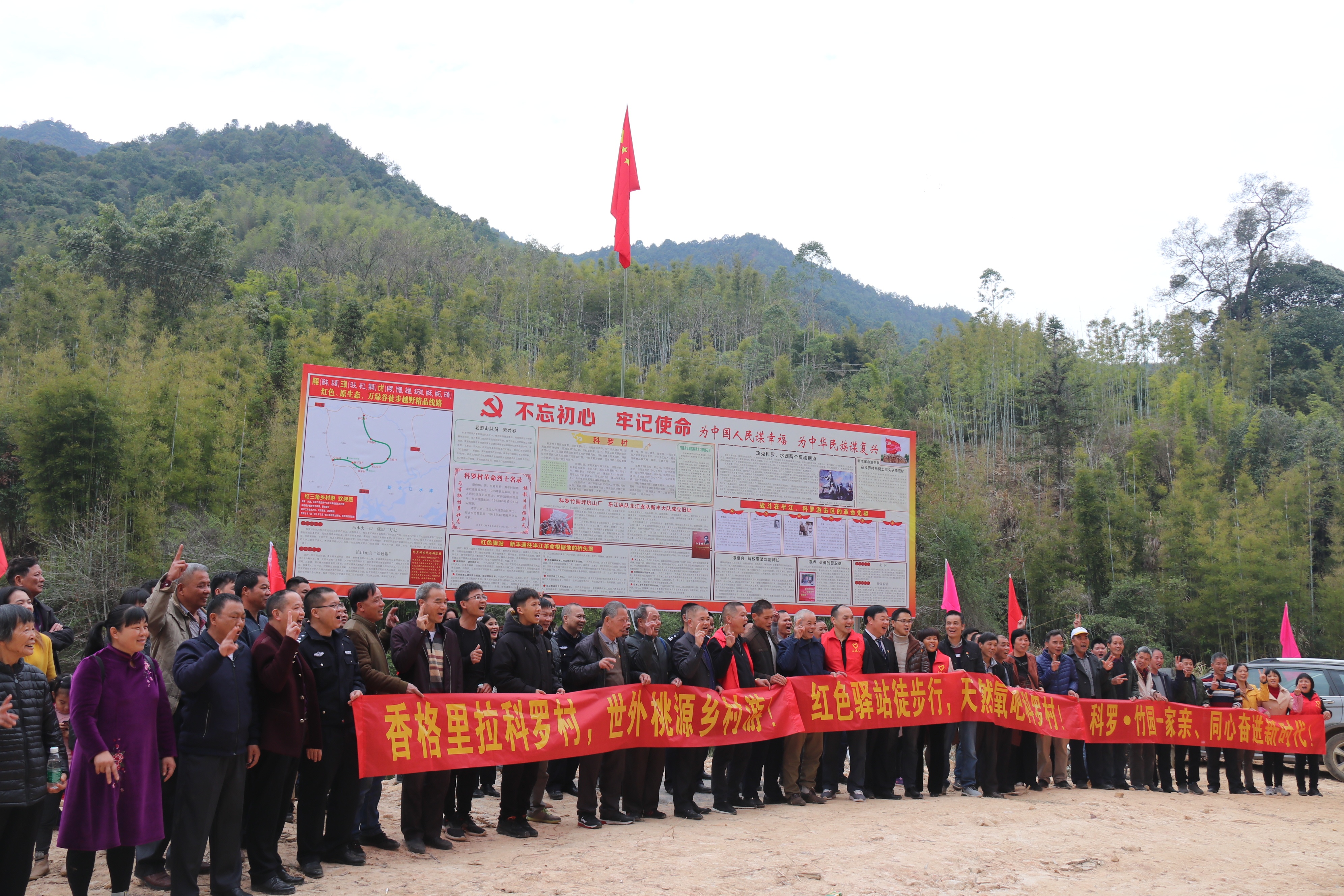 1月21日,新丰县马头镇科罗村东坑通往河源半江镇竹园村等地的路域上彩旗飘扬,热闹异常,新丰科罗、半江竹园等村近百名党员干部群众、外出乡贤、回乡过年的外出务工人员等聚集在这里,参观红色历史展览,重走东纵游击队活动之路,宣传推介家乡秀美山水,积极弘扬革命精神,传承红色基因,借力“红色+绿色”等优势资源,大力建设宜居、宜游、宜养新农村,推动乡村振兴发展。