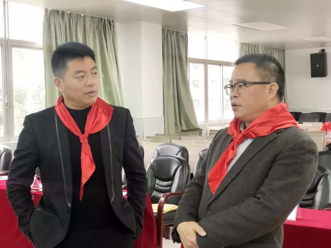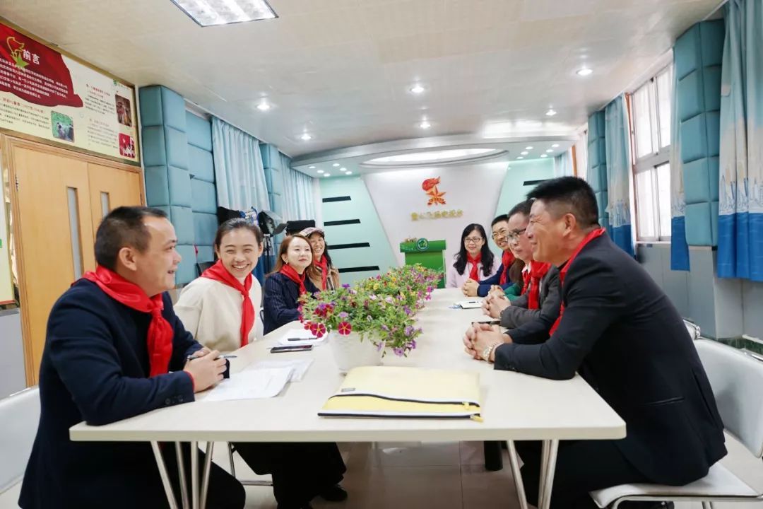 督导组成员与黎敏成校长、虞萍主任交流我校少先队工作情况。