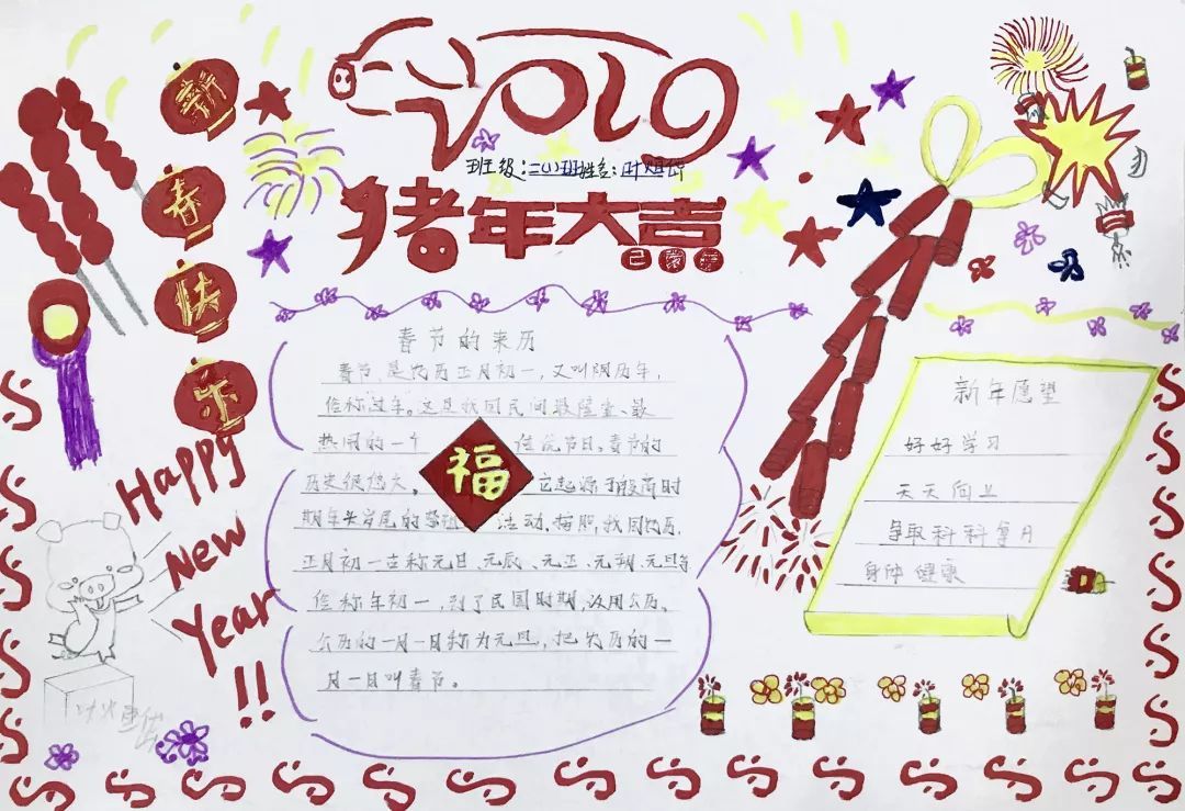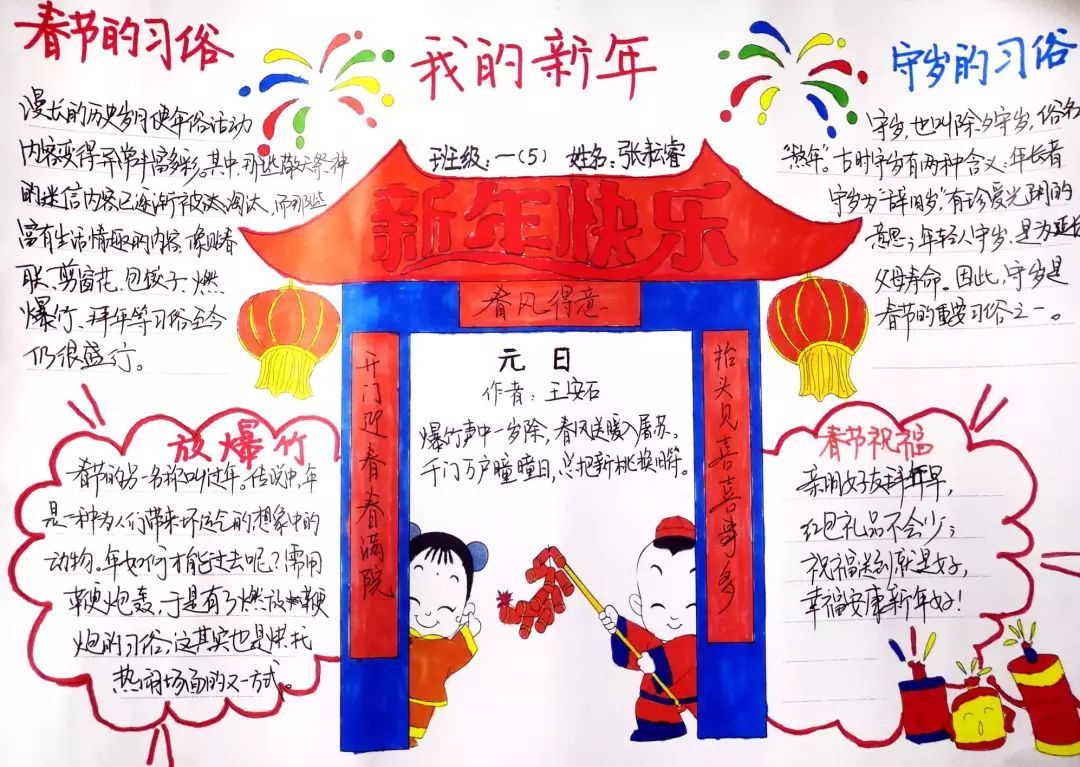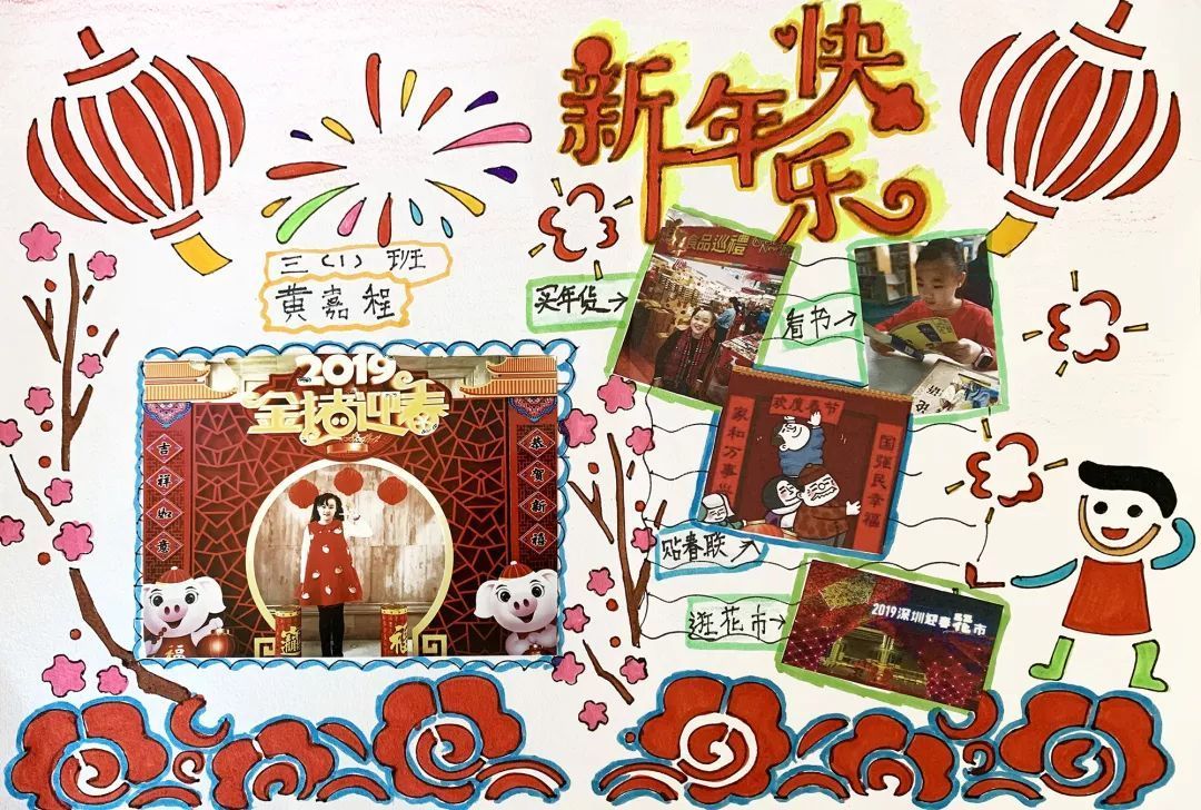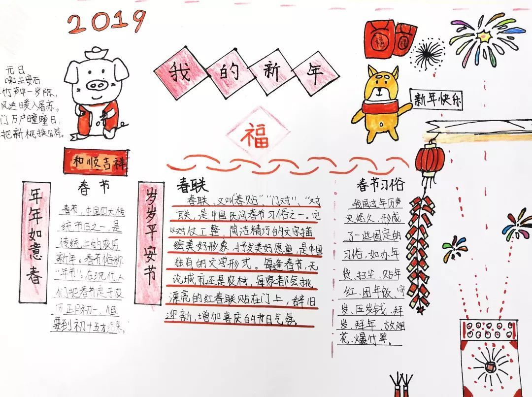 才华出众的我们用手抄报的方式记录自己的新年,快来欣赏欣赏我们的作品吧!