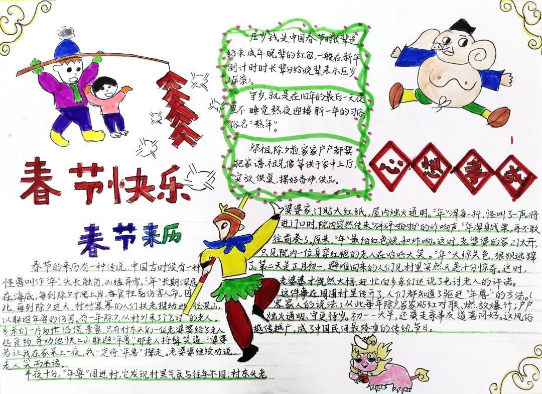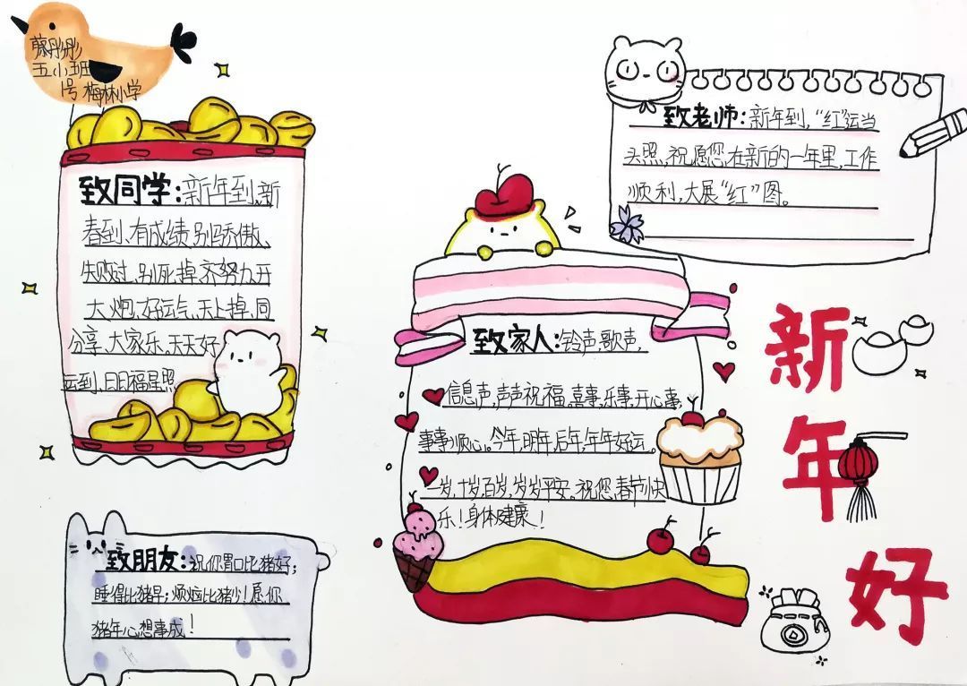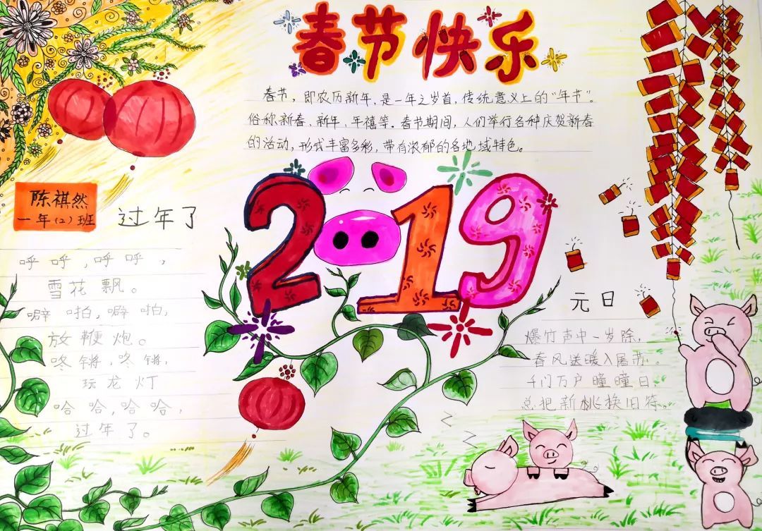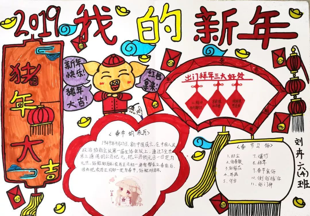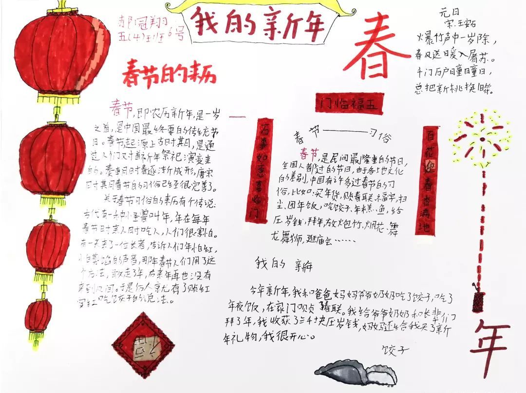才华出众的我们用手抄报的方式记录自己的新年,快来欣赏欣赏我们的作品吧!