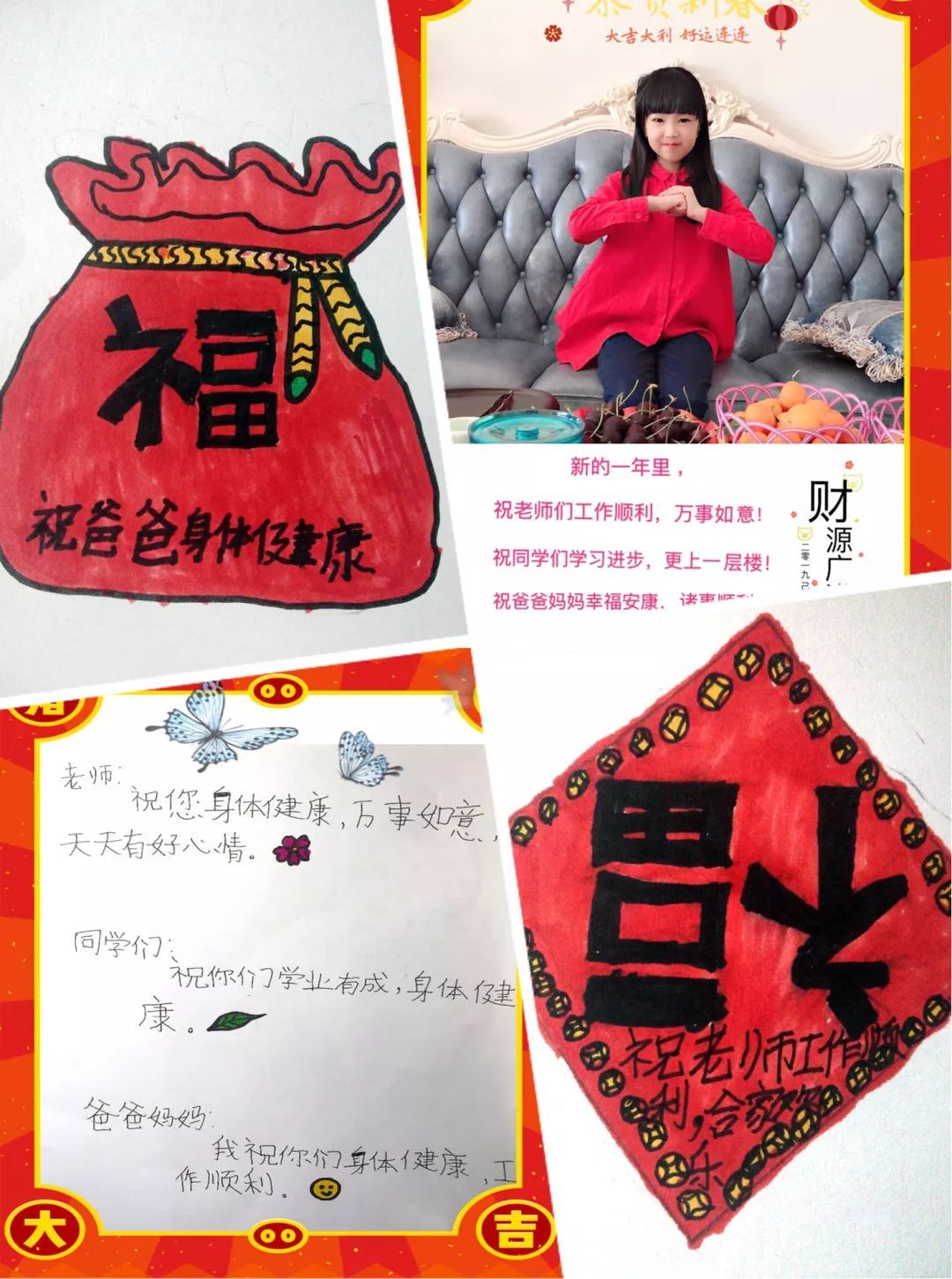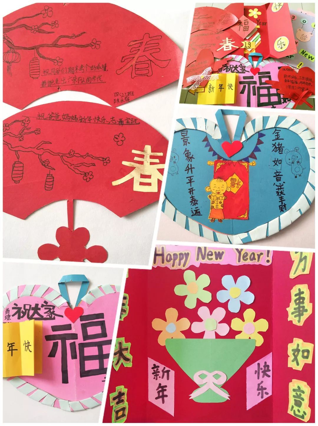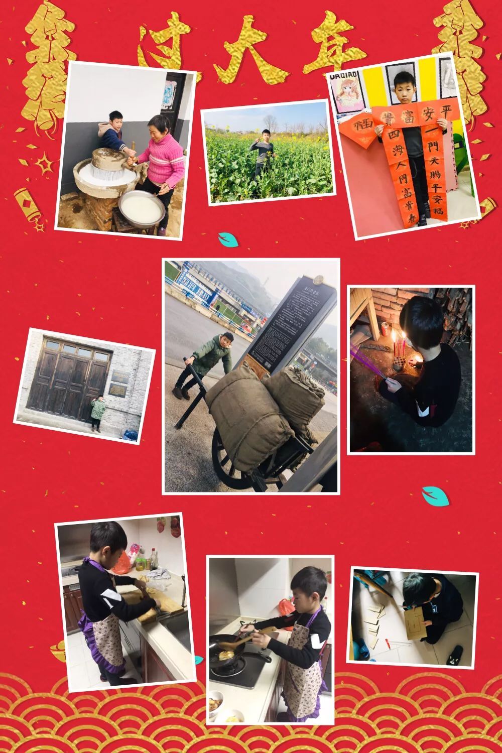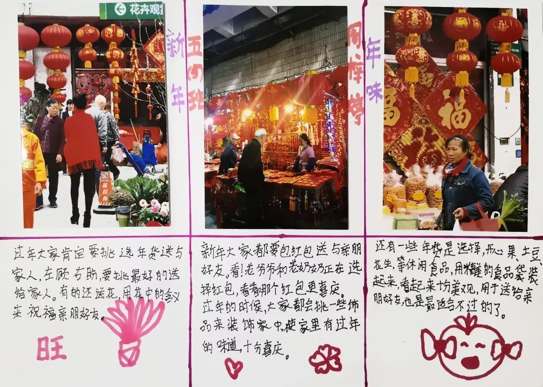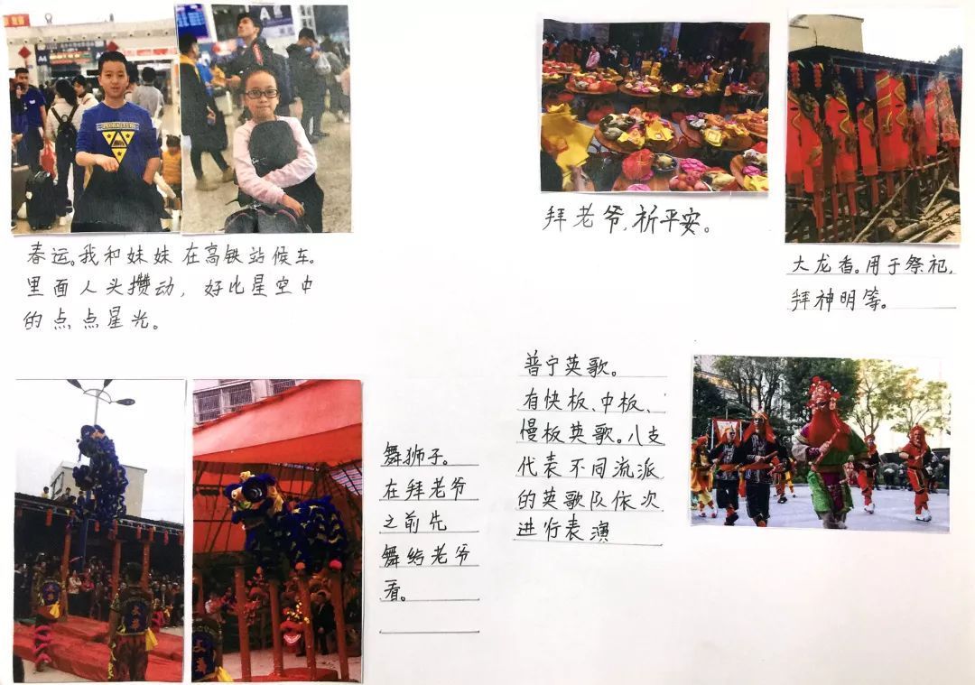快看,我们在放烟花、写春联、贴春联、舞龙舞狮、做新年贺卡等有趣的年俗活动中体验浓浓年味呢!