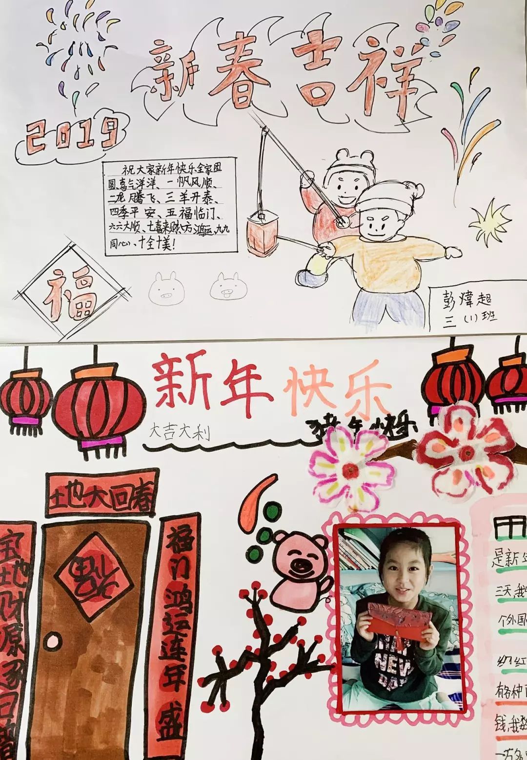 快来瞧瞧我们的新年手抄报吧!色彩缤纷的绘画,是不是萌萌哒?