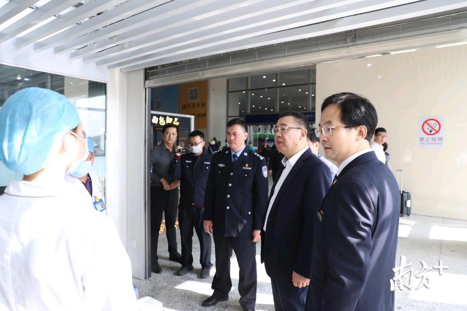 专项会议结束后,刘杰、罗斌分别带队到虎门高铁站、港澳客运码头、滨海湾中心医院、东风社区百花市场等地进行了检查,确保监测设备、医疗设备、医护人员、市场监管、站场联防联控等全面到位。