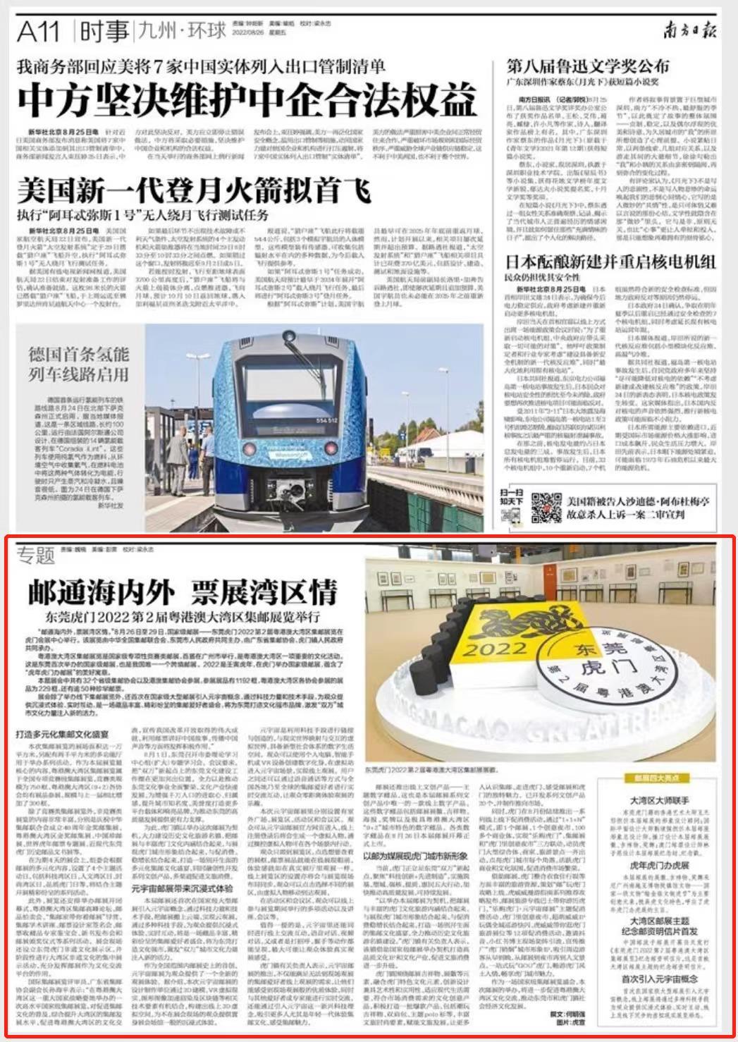 “邮通海内外,票展湾区情。”8月26日—29日,国家级邮展——东莞虎门2022第2届粤港澳大湾区集邮展览在虎门会展中心举行。该展览由中华全国集邮联合会、东莞市人民政府共同主办,由广东省集邮协会、虎门镇人民政府共同承办。
