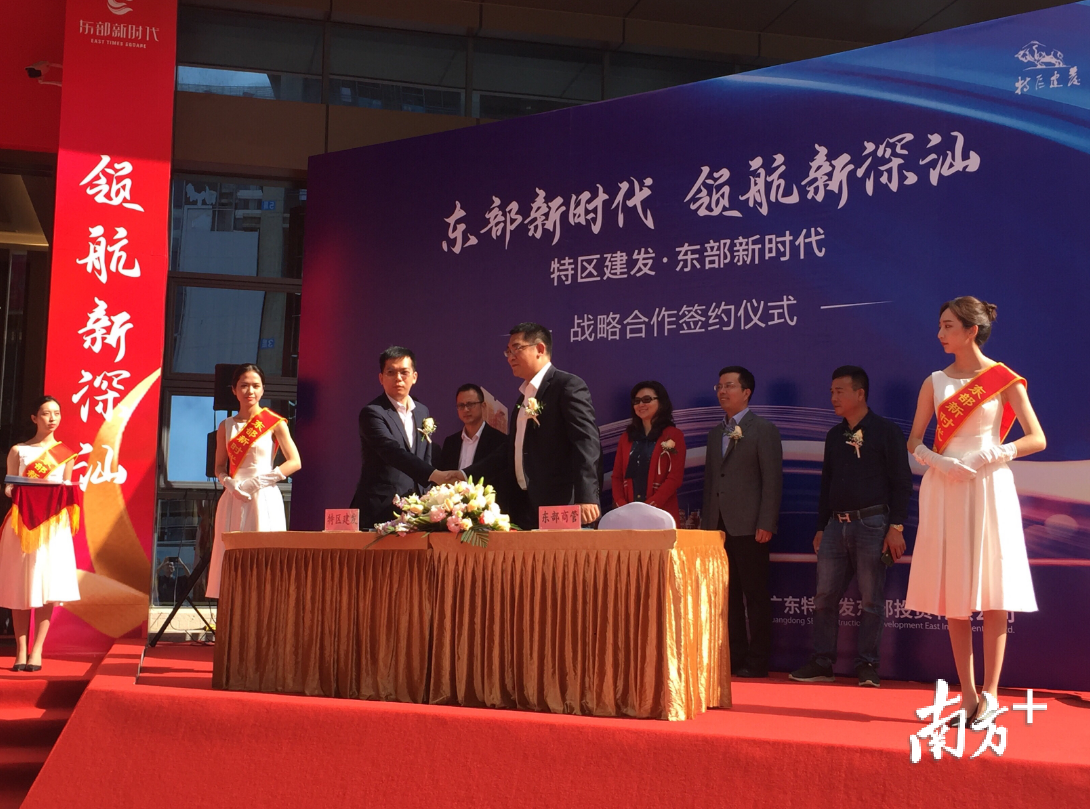“特区建发·东部新时代”是深汕特别合作区引进的产业服务配套标杆性项目,由深圳市特区建设发展集团(以下简称“特区建发集团”)全资子公司广东特建发东部投资有限公司投资约9亿元兴建。