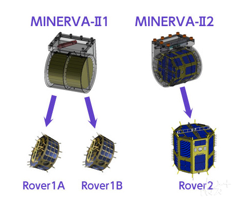 上文说到,“隼鸟号”的微型巡视器投放失败,原因是释放高度过高,未能被小行星微弱的重力场捕获,丢失在太空中。有鉴于此,“隼鸟2号”分别携带了3个巡视器和1个着陆器,以求万无一失。