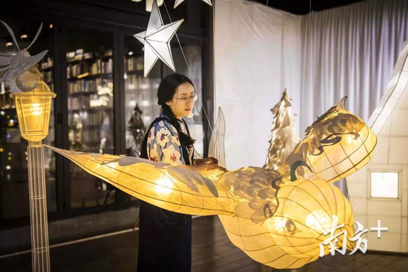 这一改造花了整整一个月时间。“没想到它很受欢迎,因为颜色有少女感,大家都叫它‘少女南狮’。”佛山花灯厂老板见状,也与温秋雯合作改良传统花灯,探索更多表现形式。