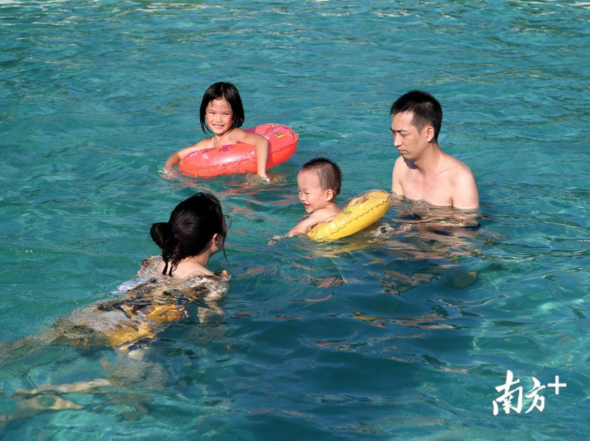 下午5时30分许,室外的温度慢慢降低,游泳的市民也带着满脸的轻松逐渐上岸离场。“太好玩了,太爽了,明天还要来。”在熙熙攘攘的撤场人群中,一对10岁左右的孩子牵着大人的手,拿着游泳圈还意犹未尽地说。
