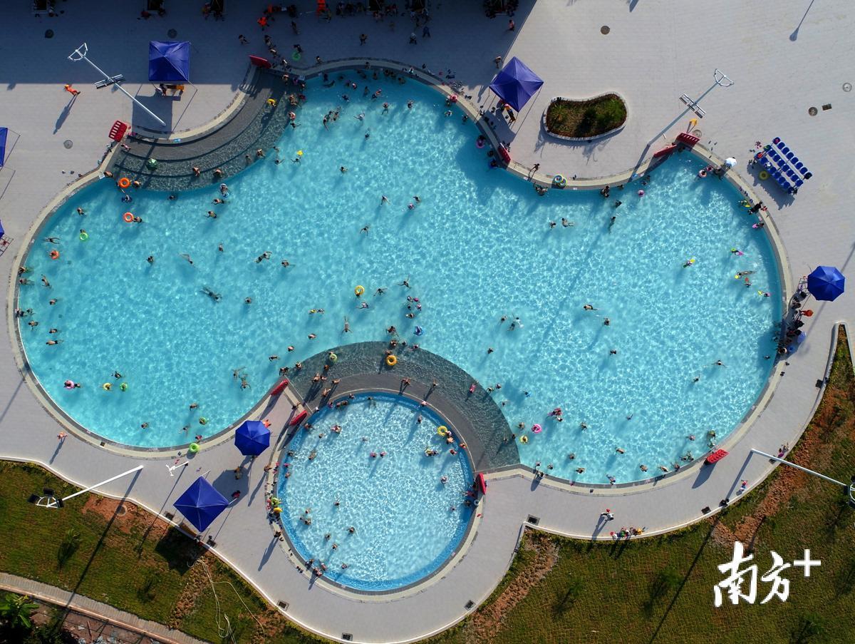 据了解,五华县长乐游泳中心是该县的一项民生工程项目,坐落于水寨镇大湖堤大湖公园内,于2018年10月动工兴建,总投资4300多万元,占地25118平方米,其中游泳池4550平方米,包括2个标准池、1个成人池、1个儿童池。标准游泳池各有10条泳道,每条泳道以绿、蓝、黄水线相隔。游泳中心还配套完善了更衣室、卫生间、医务室、休息室等设施。7月23日,五华县长乐游泳中心试运营,4550平方米的标准泳池成了当地群众的水上乐园,填补了该县公益经营游泳场地的空白。