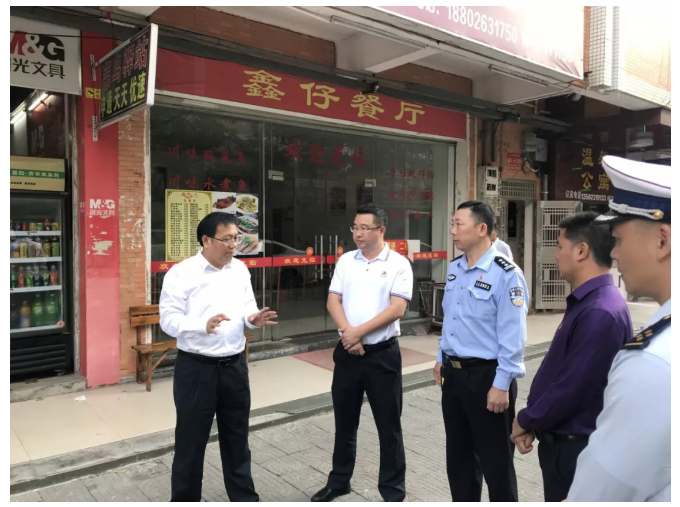 孔德胜一行深入大学城周边街道、沿街商铺、商业街等地察看,现场发现问题,现场研究解决问题,并督促业主和商家规范停车,规范经营,维护环境卫生整洁,共同参与创文工作。