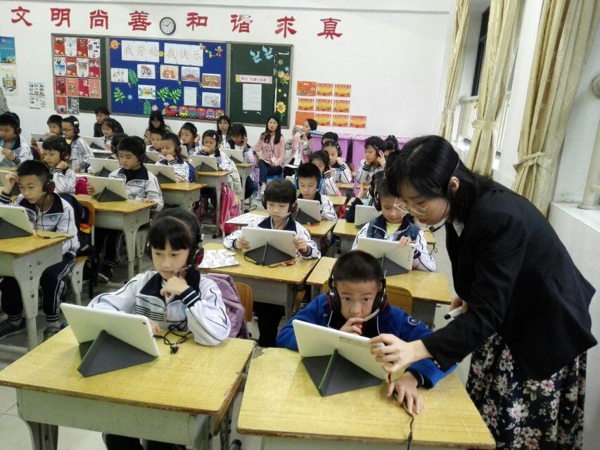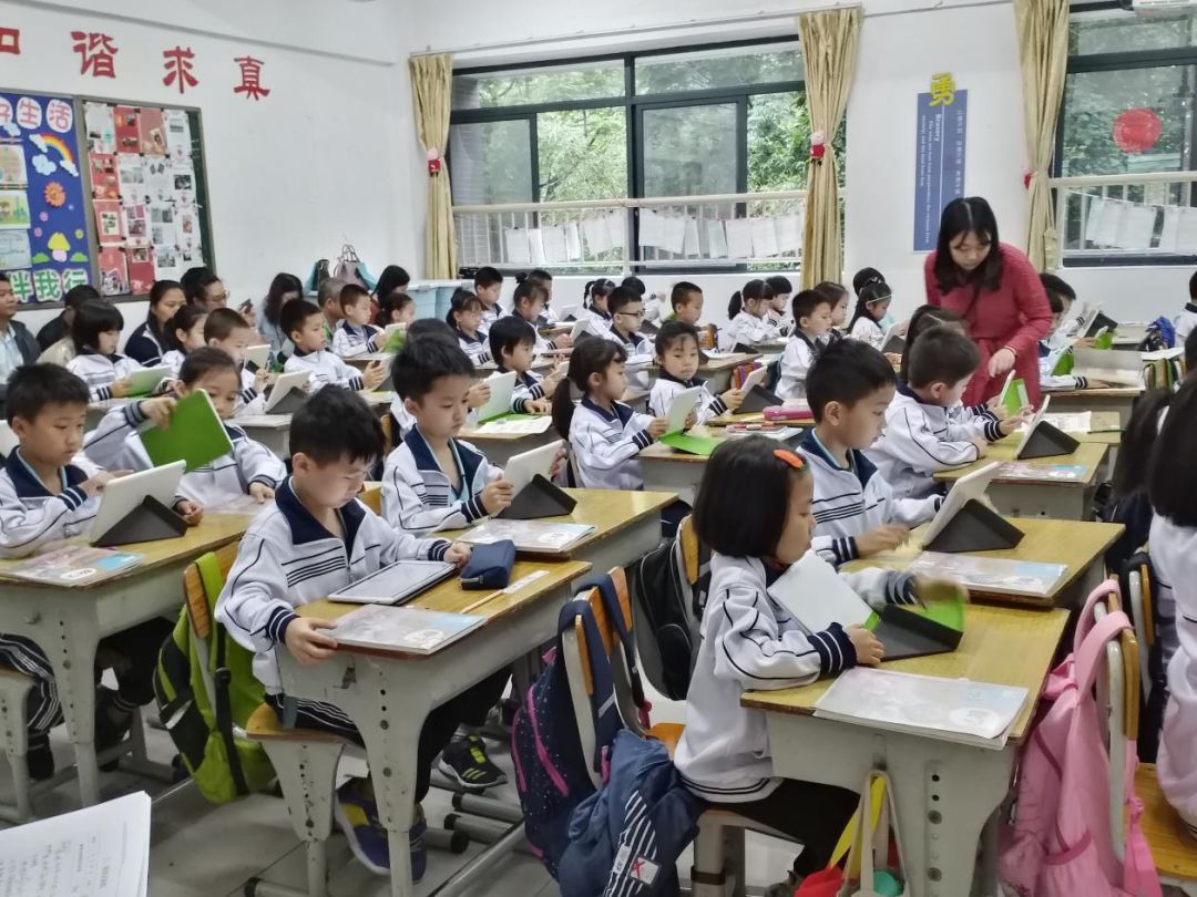 我校陈树基校长、潘惠英副校长、邓筠瑜副校长作为行政代表,与来访的骨干教师团队进行了友好的交流。在短暂的休整过后,客人们零距离进入到我们日常课堂教学中,由二年级1-3班的孩子和老师为他们带来三节精彩的电子书包智慧课堂。