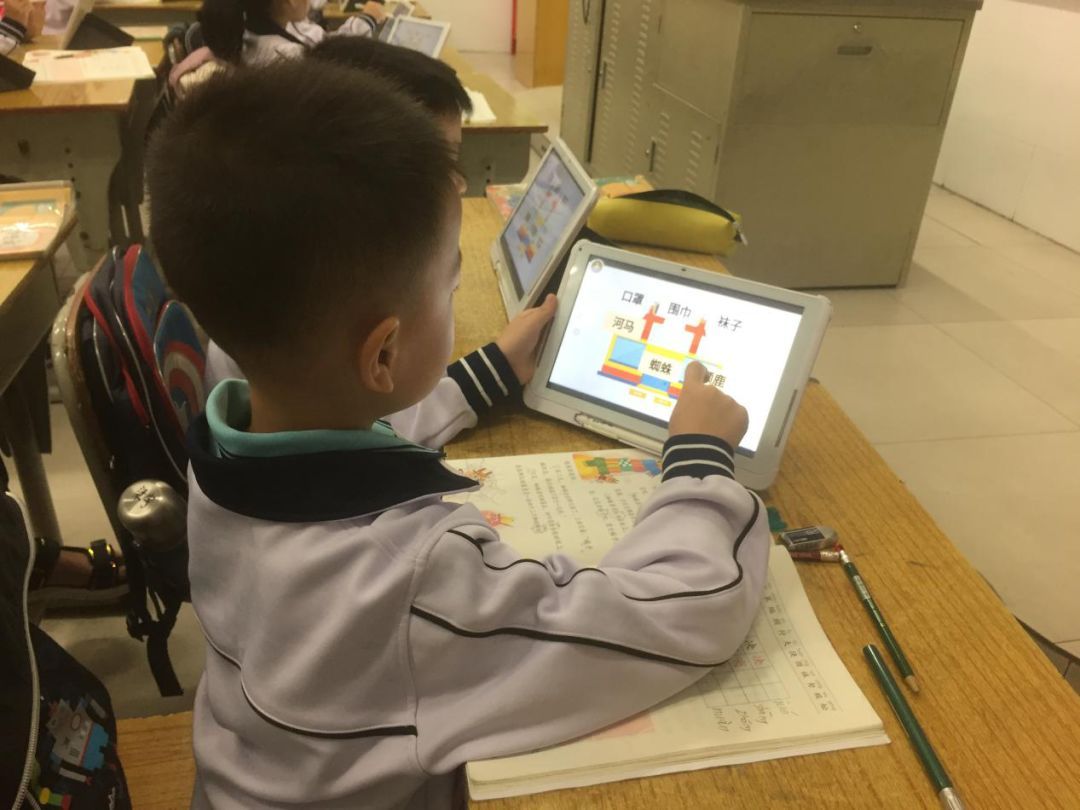 梁婉炀老师和203班的孩子带来的语文课《蜘蛛开店》同样十分生动有趣。孩子们跟随着梁老师的步伐,通过听故事——讲故事——编故事充分感受到童话故事的魅力。认真听,大胆说,认真写,孩子们熟练地操作平板,完成阅读练习,学习生字,充分体会到了自主学习、自主探究的乐趣。