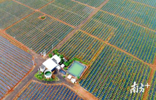 从空中俯瞰,遂溪火龙果基地蔚为壮观。