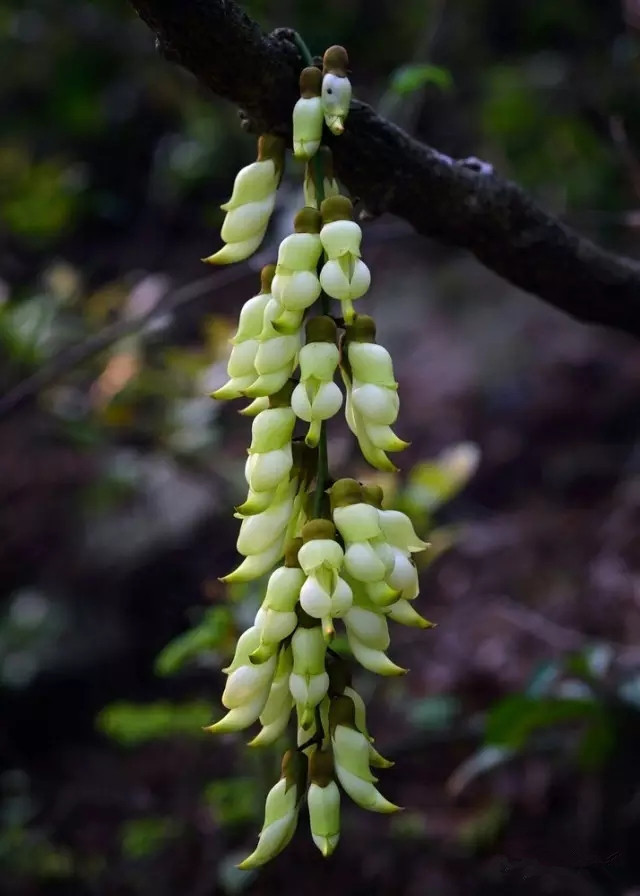 每逢清明节前后,禾雀花吊挂成串犹如禾雀飞舞。陆河的禾雀花喜欢在阴凉、岩石边生长,花瓣颜色为米黄色。