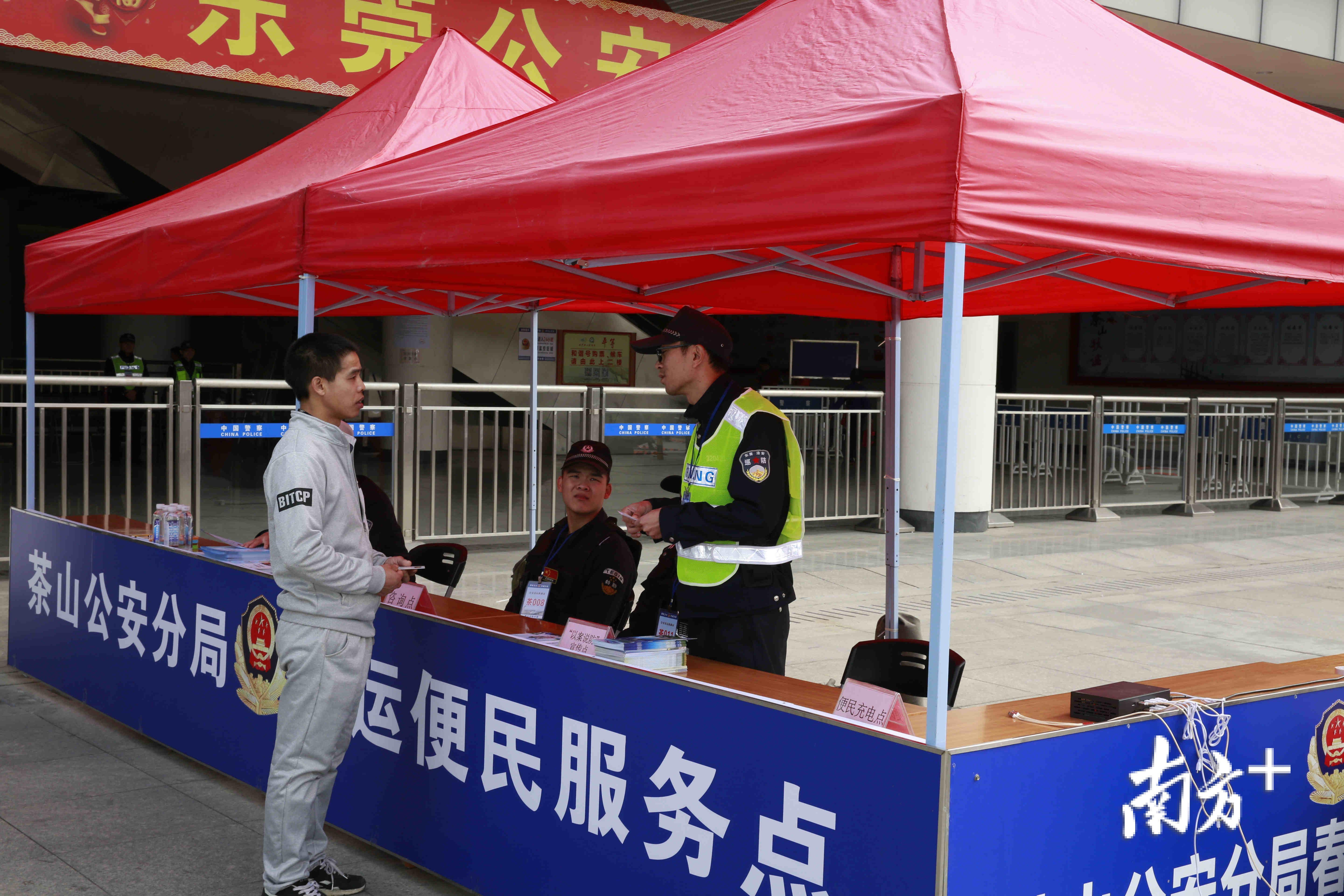 为了营造安全有序、温暖和谐的春运氛围,今年茶山镇在东莞火车站茶山侧广场设置春运便民服务点,进行“以案说防”宣传,并为市民提供充电和饮水的便民服务;设置特警执勤点,春运期间特警人员每天早上8点半到晚上11点进行执勤,为进出站的旅客提供一个安全保障服务;在火车站出入口位置设置春运临时医疗点,向过往的旅客宣传预防流行性疾病的知识等,并提供医疗服务,让旅客回家路平安、有序、温暖。