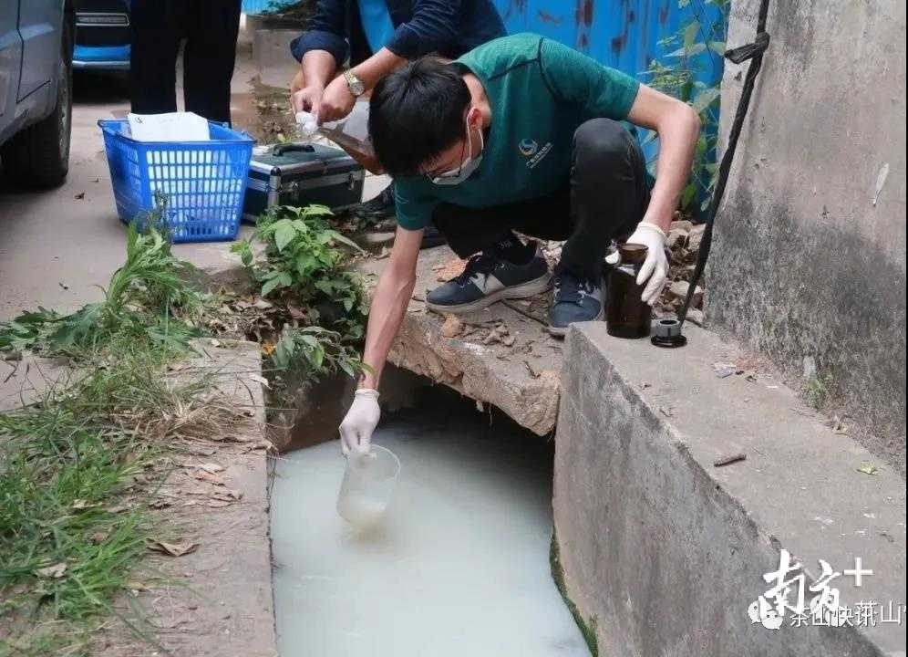 日前,茶山生态环境分局发现该镇内河出现大量乳白色液体后,当即联合网格中心组建执法检查组进行排查,从管网井口追踪废水源头。