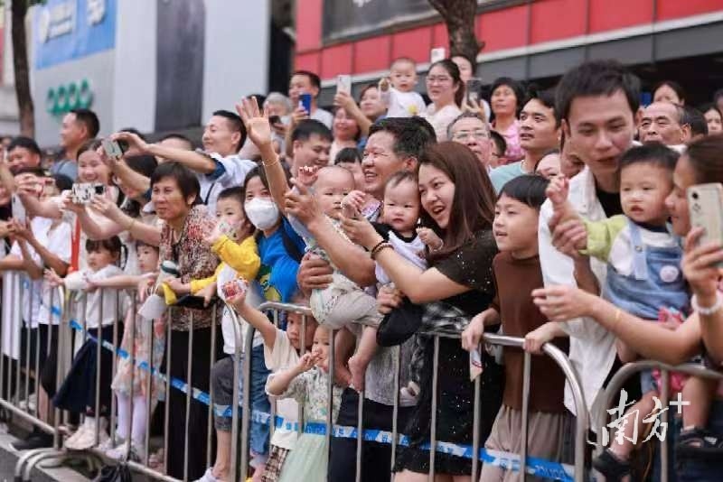 巡游方阵中,值得一提的是港澳同胞方阵,该方阵由香港茶山同乡联谊会、澳门茶山同乡联谊会、港澳杰出知名人士代表、青年企业家代表以及表演队伍等组成,他们以“茶山情、湾区梦、中国心”为口号,展现了港澳青年对祖国强烈的向往和归属感。
