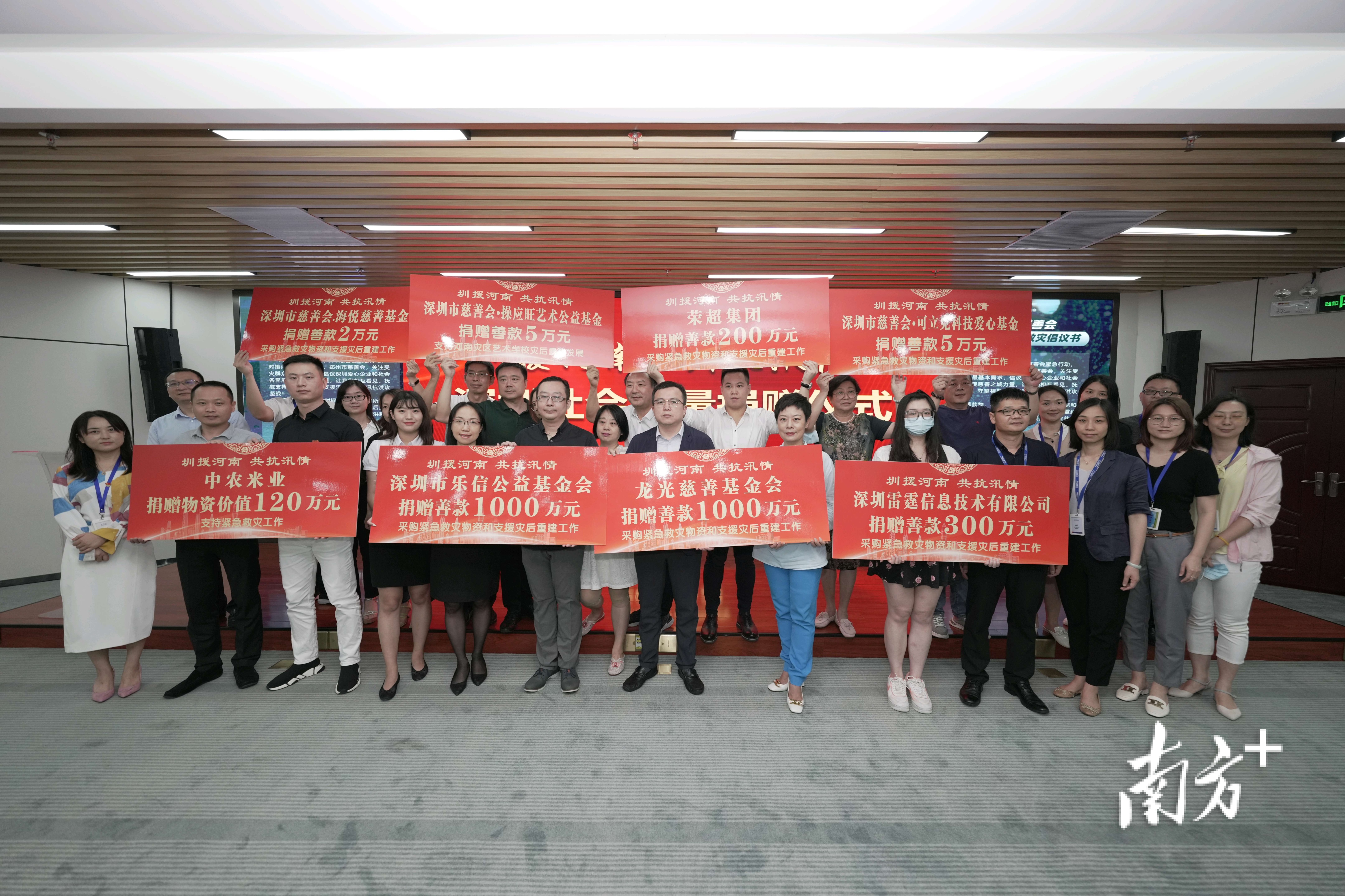 7月22日,“圳援河南 共抗汛情——深圳社会力量捐赠仪式”在深圳中民时代广场3楼举行。8家企业代表出席了活动,现场捐赠逾2800万元。