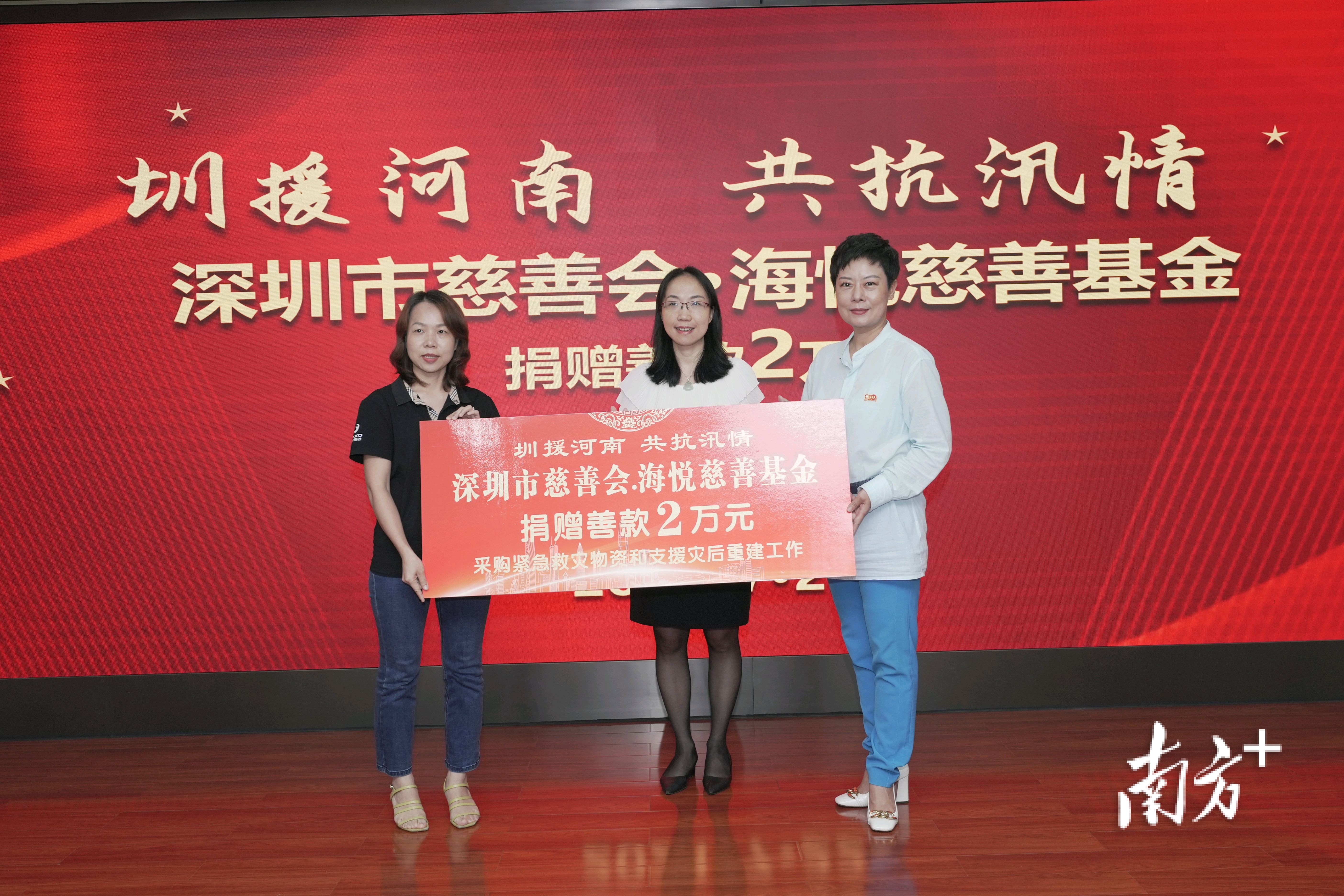 深圳市慈善会助力河南抗洪救灾倡议书发出后,社会各界积极响应,企业和社会组织迅速响应发挥所长,从物资集结到物流运输,捐赠善款到志愿者行动都体现出“圳援”的力量。此次活动现场,龙光慈善基金会捐赠1000万元、深圳市乐信公益基金会捐赠1000万元、深圳雷霆信息技术有限公司捐赠300万元、荣超集团捐赠200万元、中农米业(深圳)有限公司捐赠120万元等8家爱心企业代表出席活动进行捐赠。深圳的爱心不止于此,仍然有大量企业和爱心人士不断参与进来。
