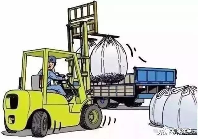 7.叉车司机用叉运两包吨袋装车,向后倒车时猛打了转向,叉车发生侧翻。