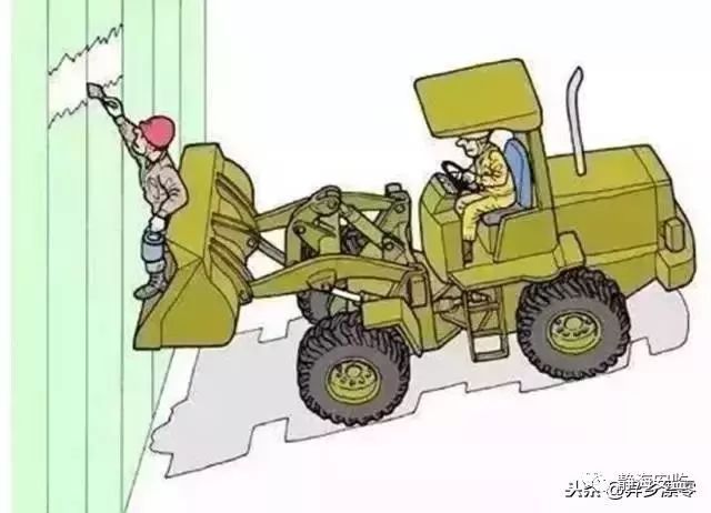14.一名工人站在铲车上涂漆,司机松开了刹车,工人被夹伤。