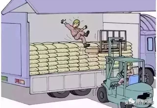 6.一名工人站在车厢上指挥叉车往车上装12m长H型钢。H型钢突然从货叉上滑落,将车上的指挥人员压在下面。