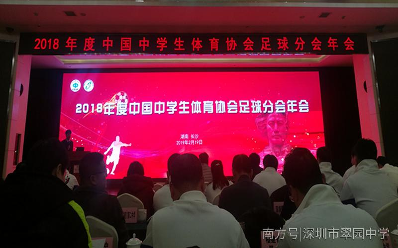 2018年2月19日,正值元宵佳节,中国中学生体育协会足球分会年会在长沙岳麓区举行。来自全国各地一百余所学校的校长及项目主管齐聚一堂,回顾分会发展之路,分享校园足球开展的经验。受大会组委会力邀,翠园中学校长韩冬青率翠园足球俱乐部部分成员参会。
