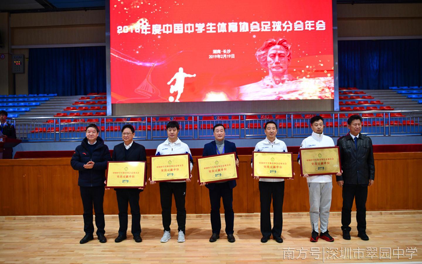 1. 深圳市翠园中学荣获“中国中学生体育协会足球分会突出贡献奖”