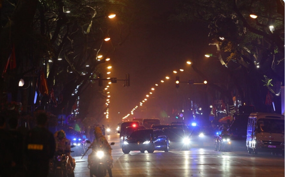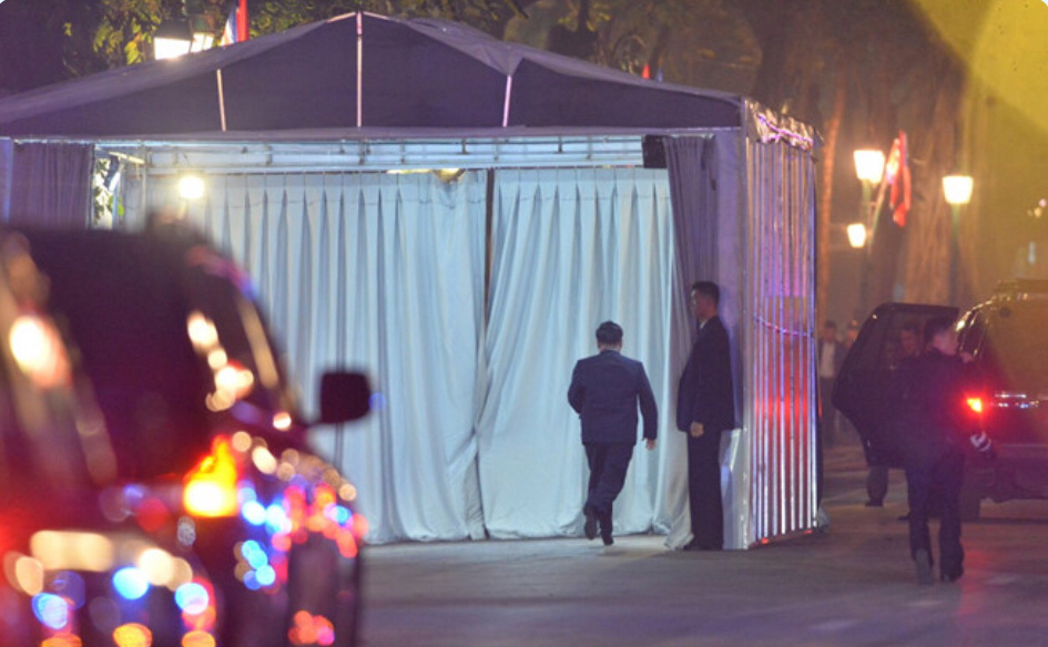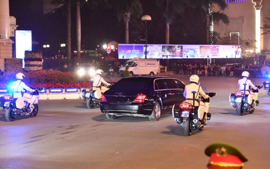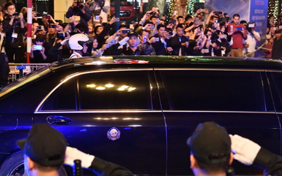 朝鲜最高领导人金正恩的车停靠在美利亚酒店门口,正式结束了第二次峰会的第一天。(编译:南方日报、南方+记者李卓)