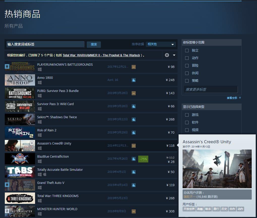 4月16日,巴黎圣母院大火的第二天,在全球最大的综合性数字发行平台Steam上,《刺客信条:大革命》重新登上热销榜前10。