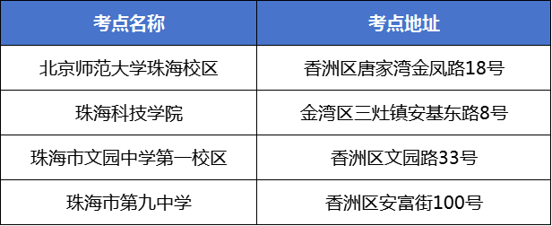各考点均不提供考生停车位,周边停车困难,各位考生务必在考前根据准考证上的考点名称、考试时间规划好赴考线路,尽量乘坐公共交通工具,进入考场需智能安检门安检和人工安检,建议提前60分钟达到考点(珠海科技学院考点提前70分钟,北京师范大学珠海校区考点提前90分钟);预留充足的时间以免耽误考试。