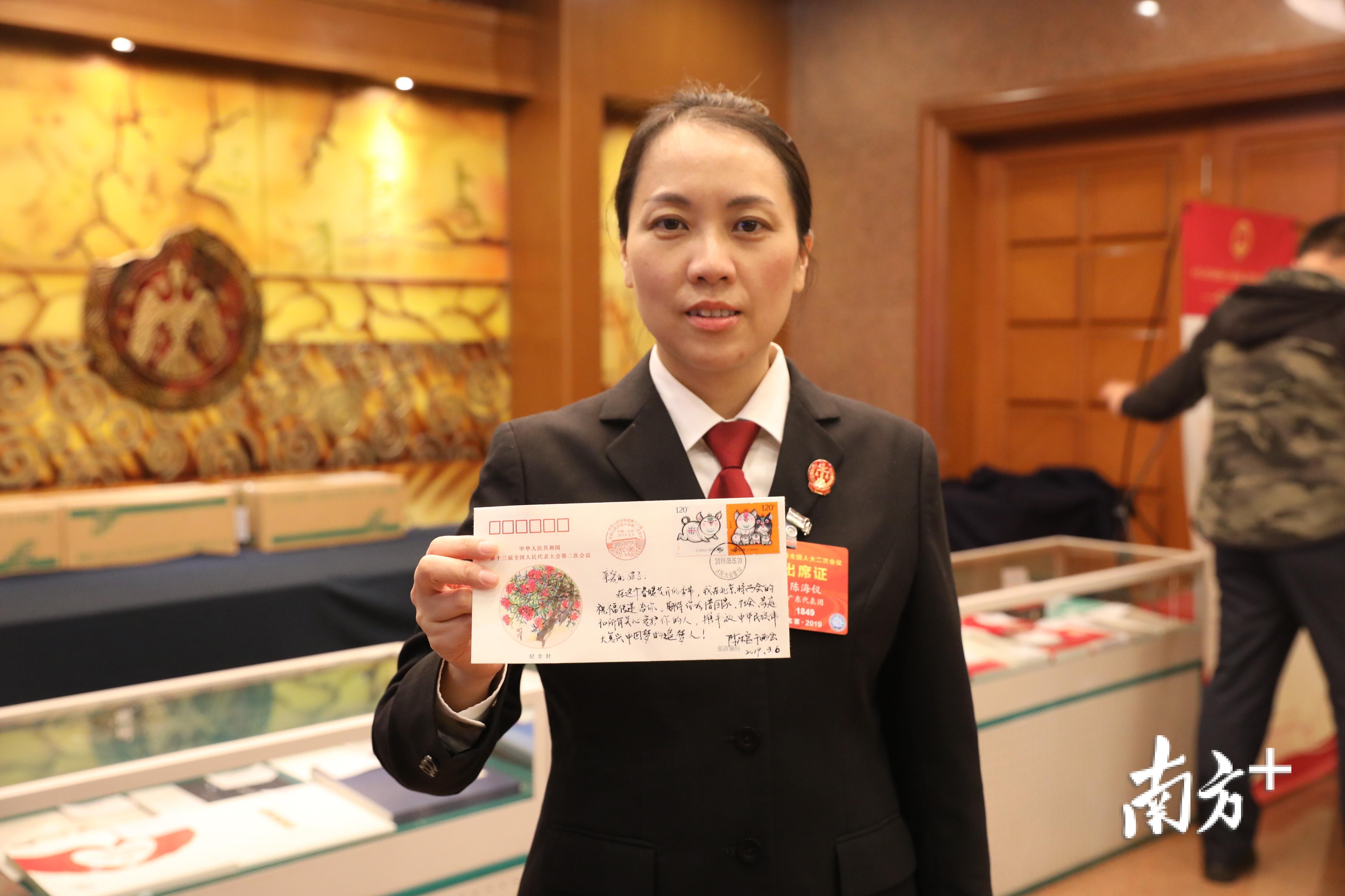 当选为十三届全国人大代表后,陈海仪感到肩上的担子更重了。如何将代表和法官两种身份有机结合?去年参会间隙,她萌生了给孩子们写纪念封的念头。