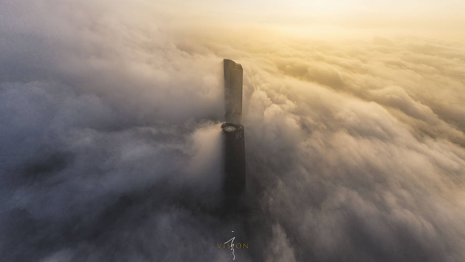 2月7日,广州大年初三清晨,平流雾再度袭来,在黎明光线的照耀下更显摩天大楼的雄伟。陈国亨 摄